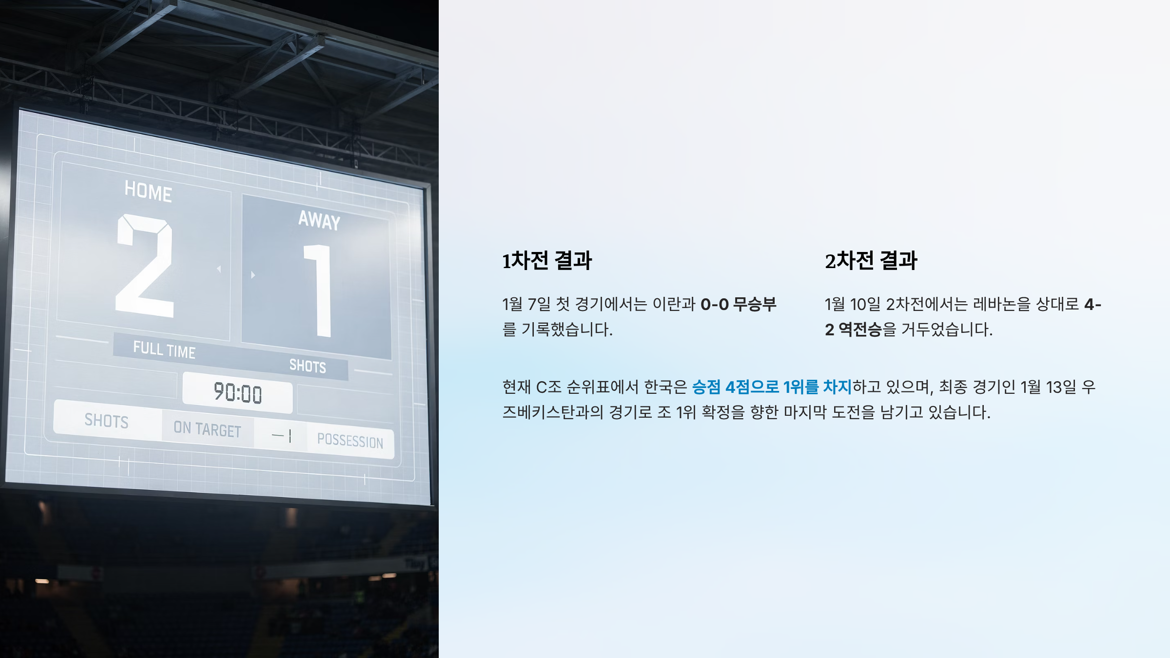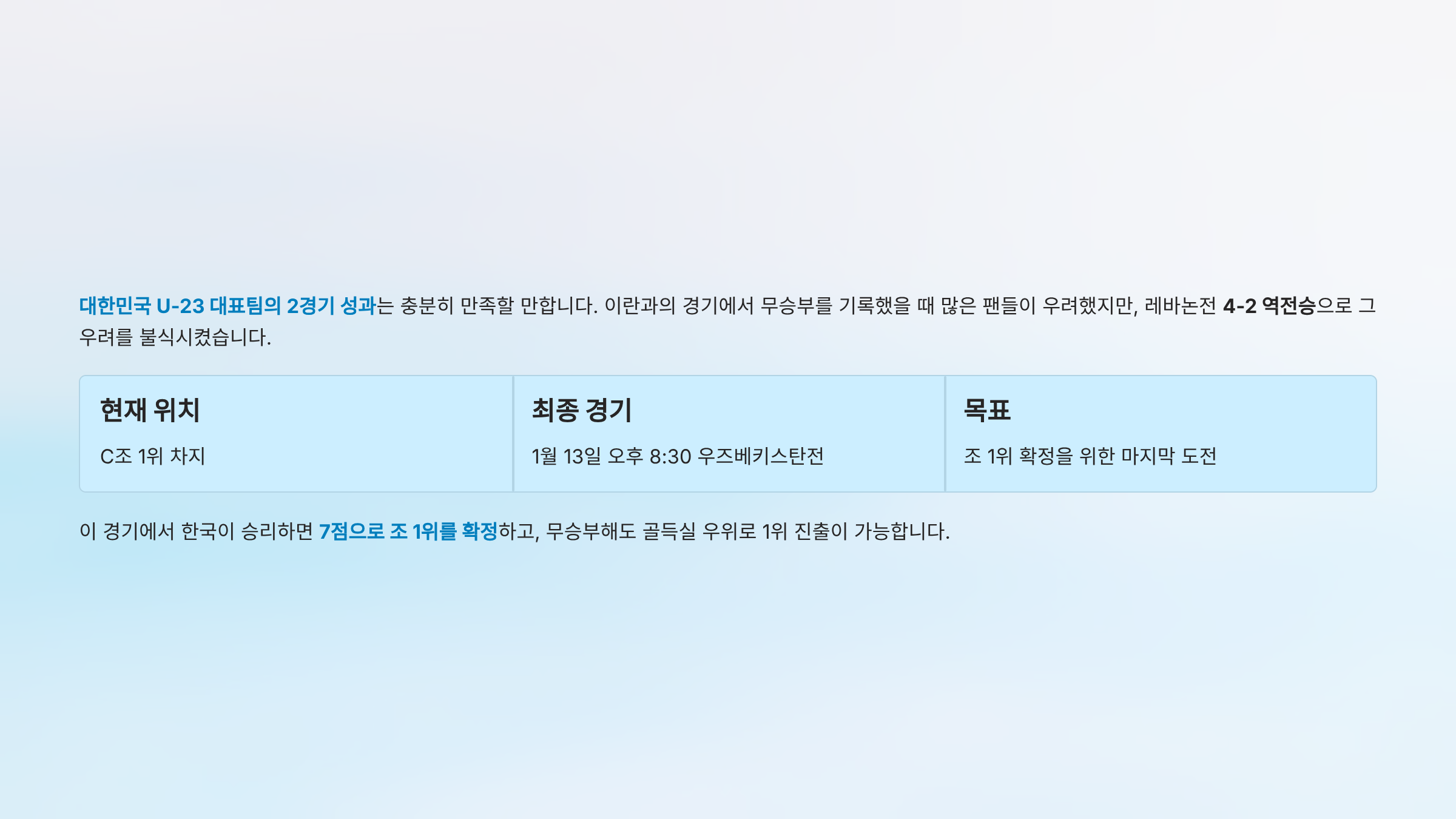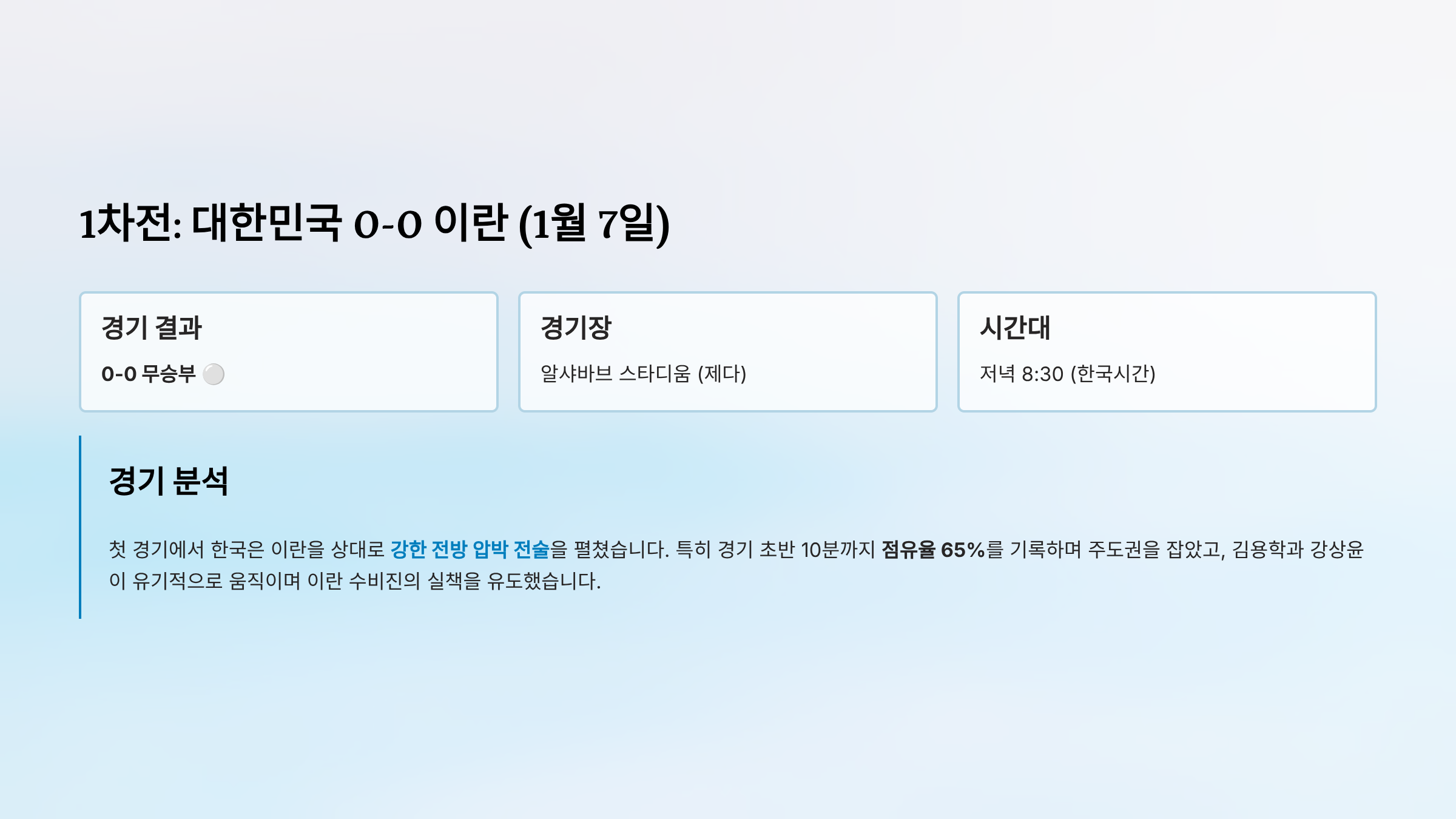 마치며: 1월 13일 우즈베키스탄전이 조 1위를 결정 짓는다 ✨