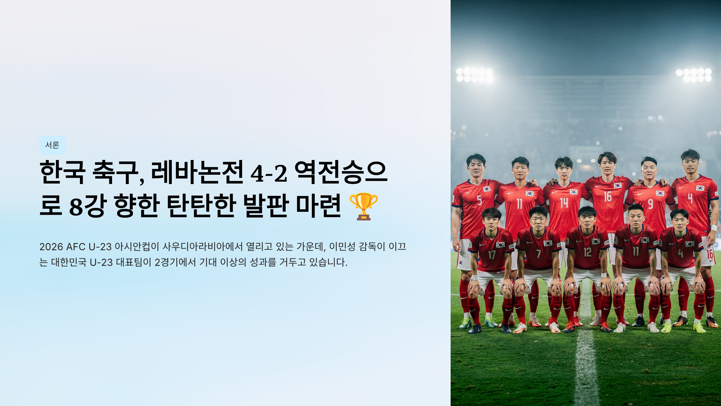 한국 축구, 레바논전 4-2 역전승으로 8강 향한 탄탄한 발판 마련 🏆