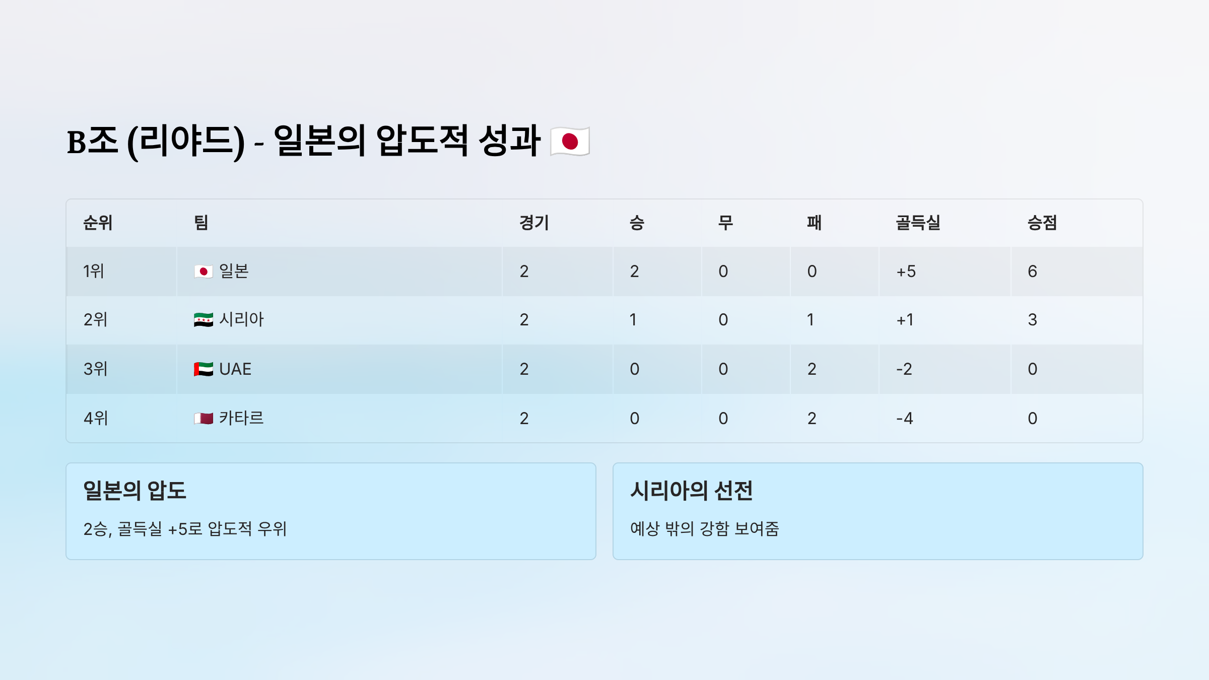 B조 (리야드) - 일본의 압도적 성과 🇯🇵
