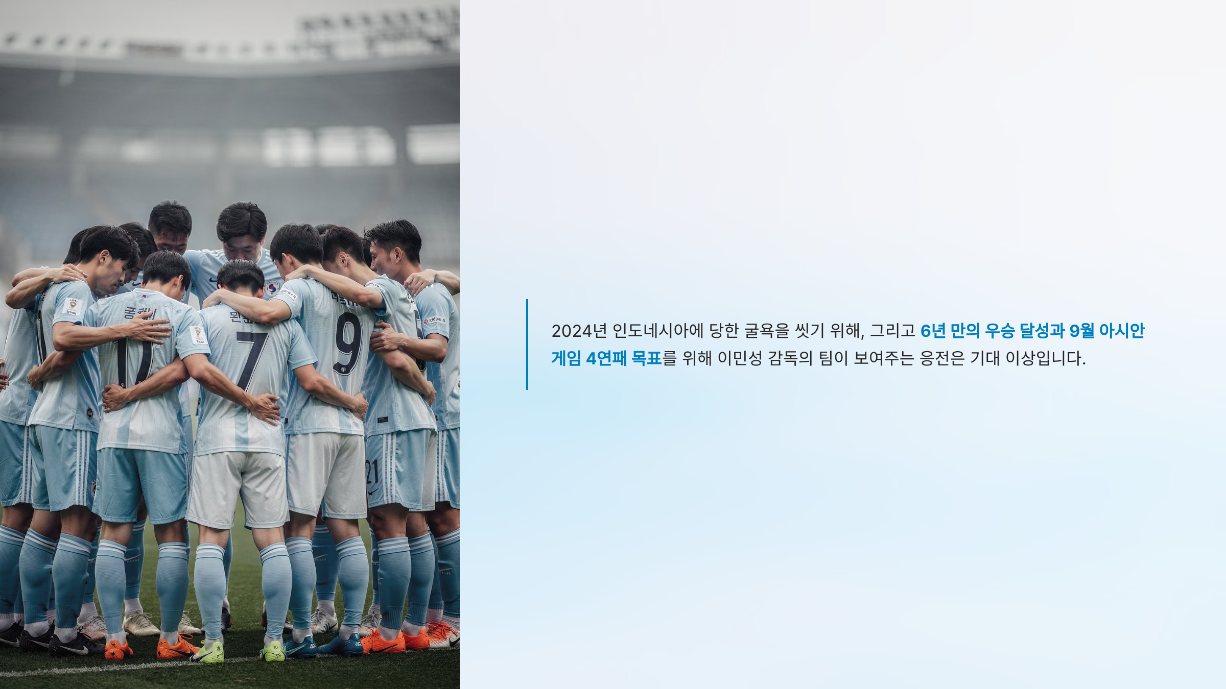 2024년 인도네시아에 당한 굴욕을 씻기 위해, 그리고 6년 만의 우승 달성과 9월 아시안게임 4연패 목표를 위해 이민성 감독의 팀이 보여주는 응전은 기대 이상입니다.