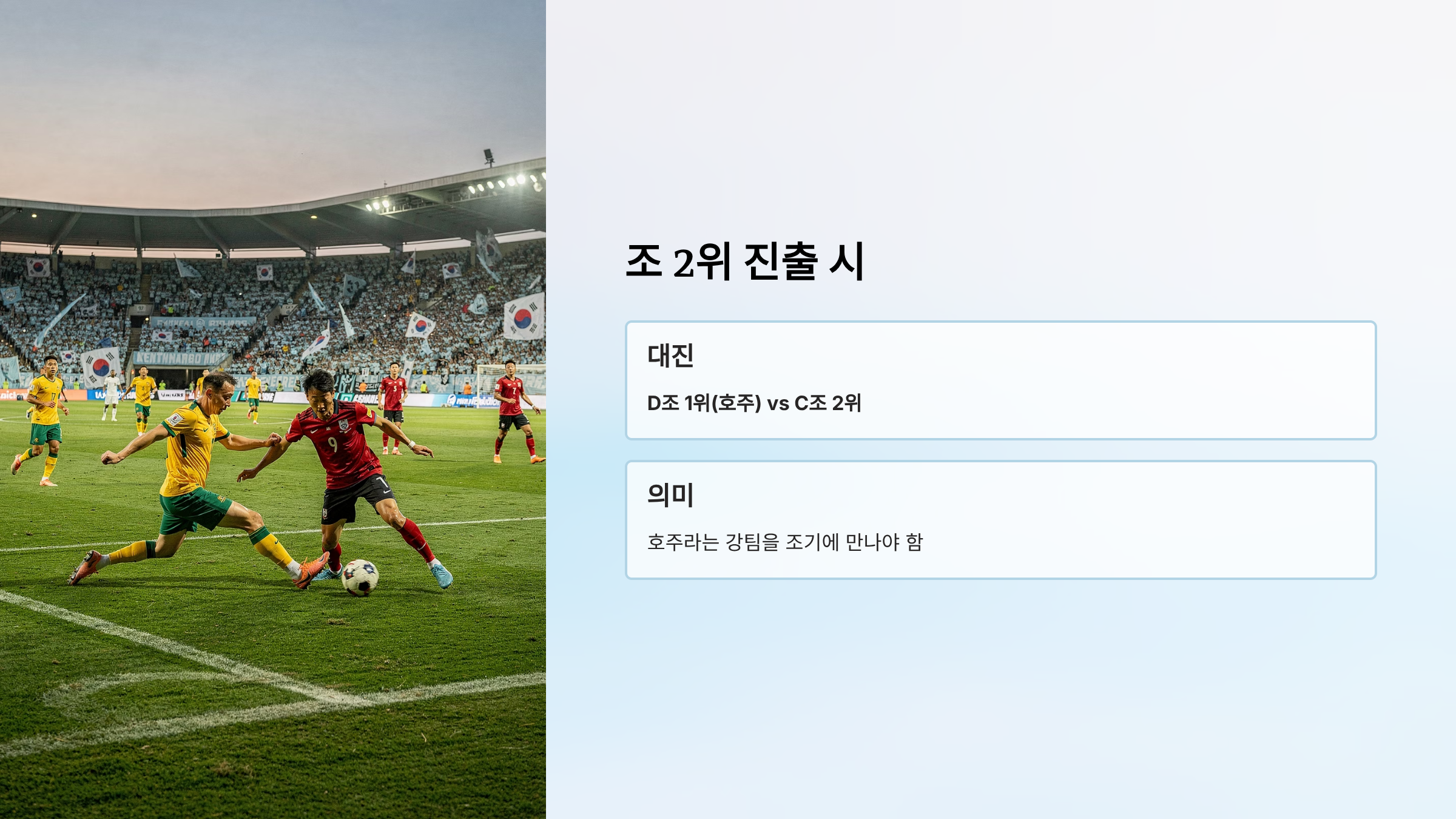- 호주(D조 1위)를 피할 수 있는 유리한 위치