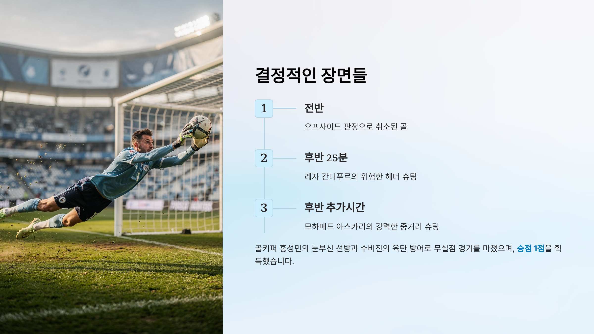 - 후반: 교체 투입된 선수들의 활력으로 점진적으로 주도권 회복