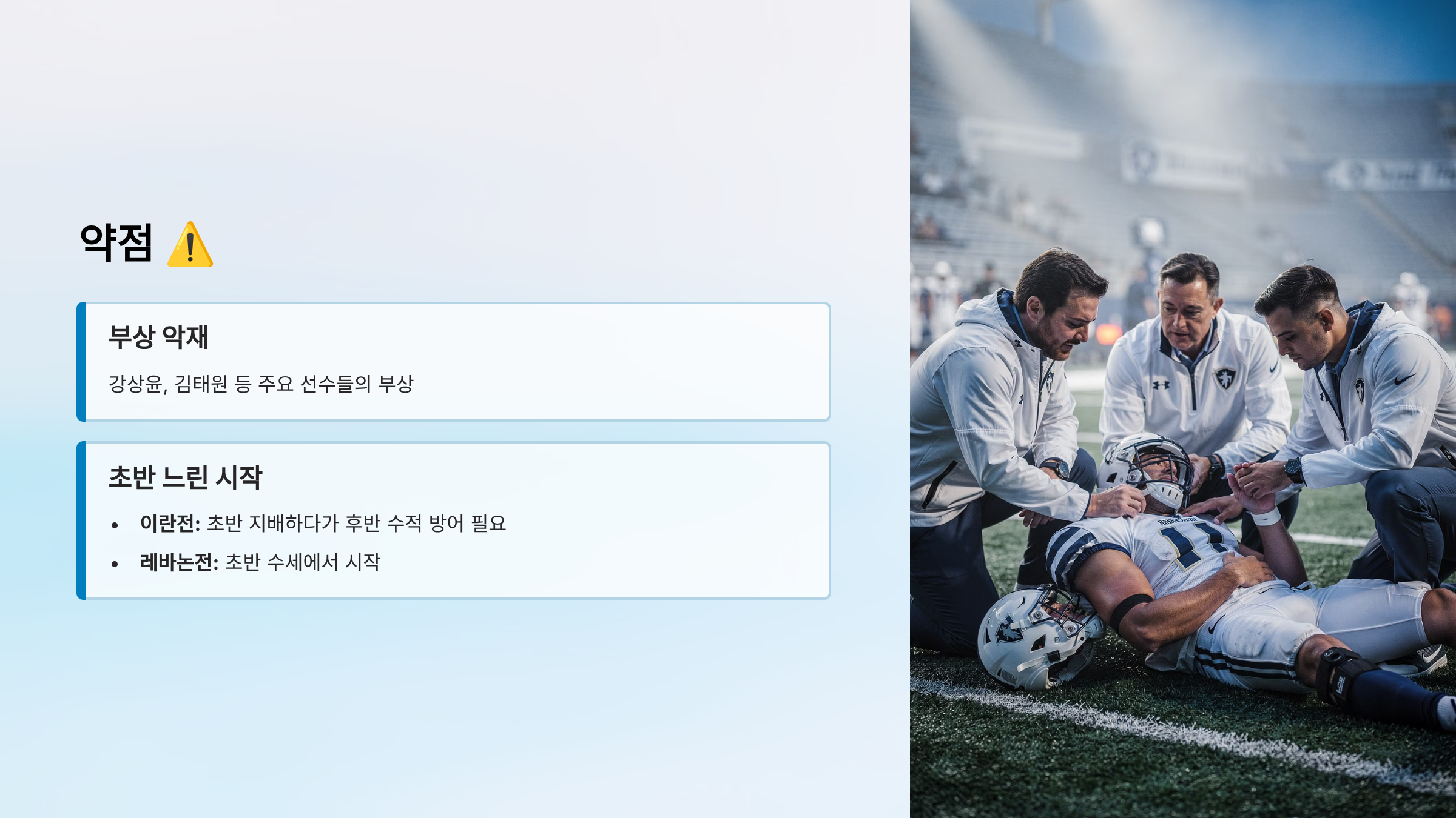 - 강상윤, 김태원 등 주요 선수들의 부상