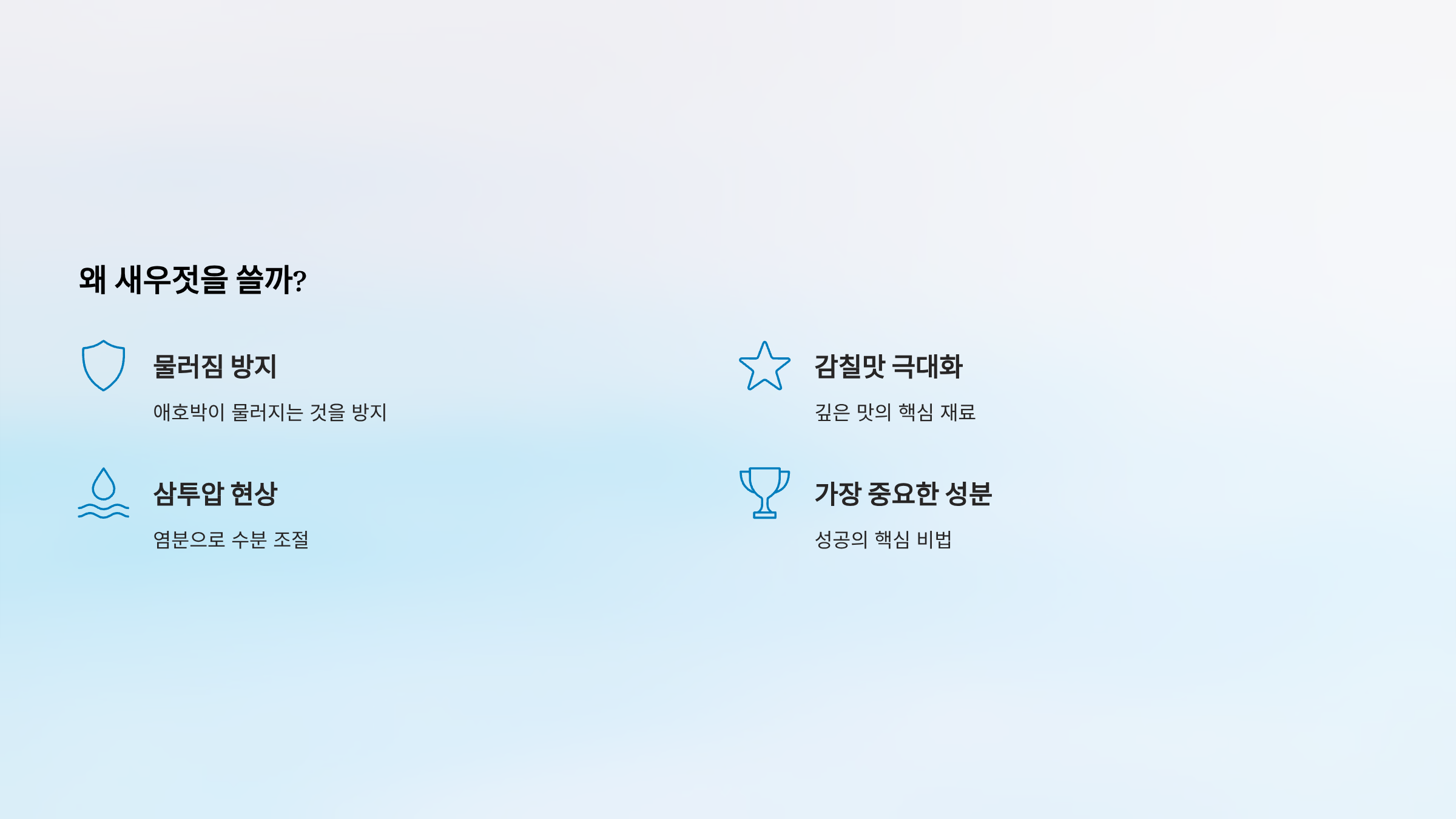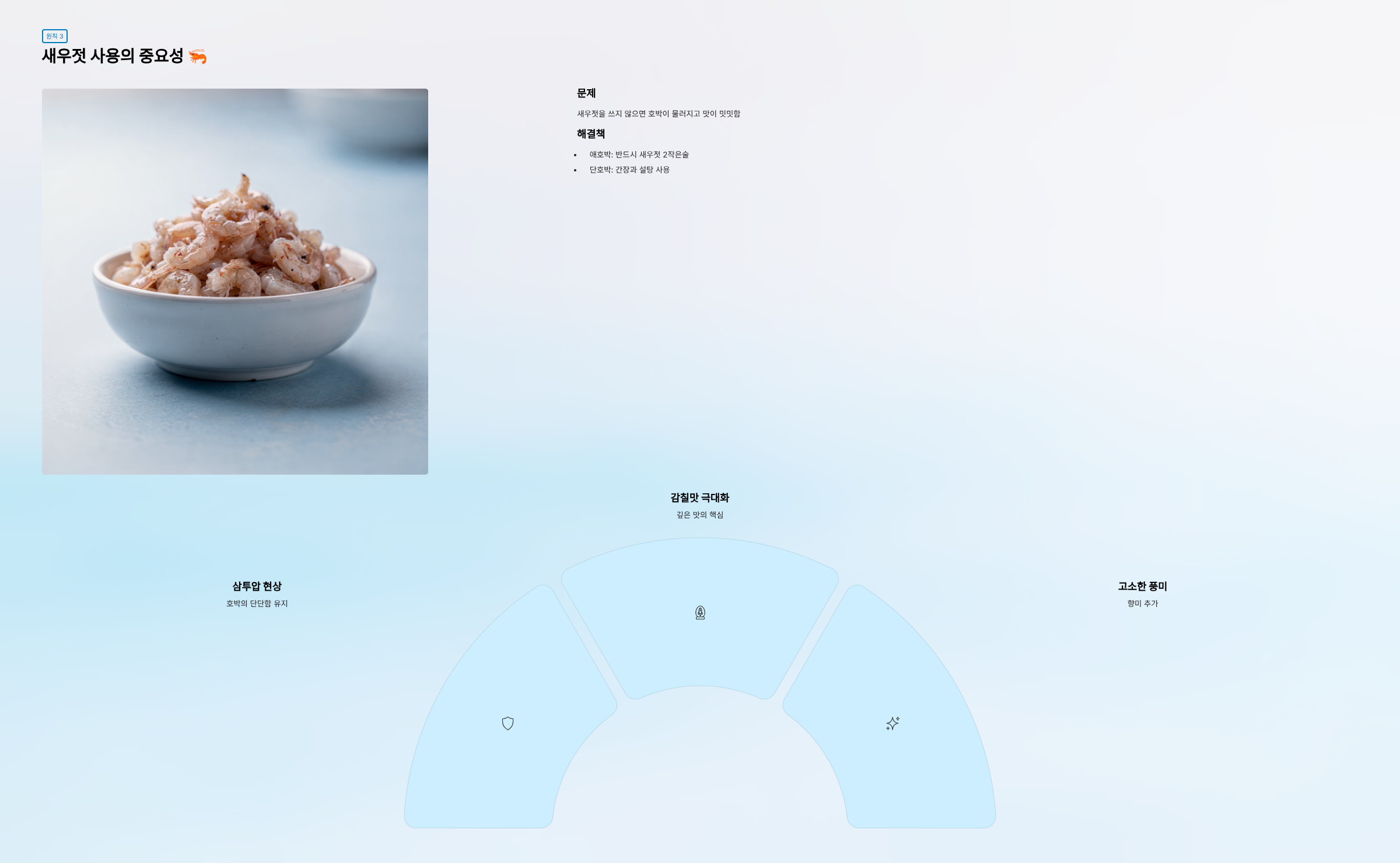 - 새우젓의 염분이 호박의 수분을 조절하는 역할