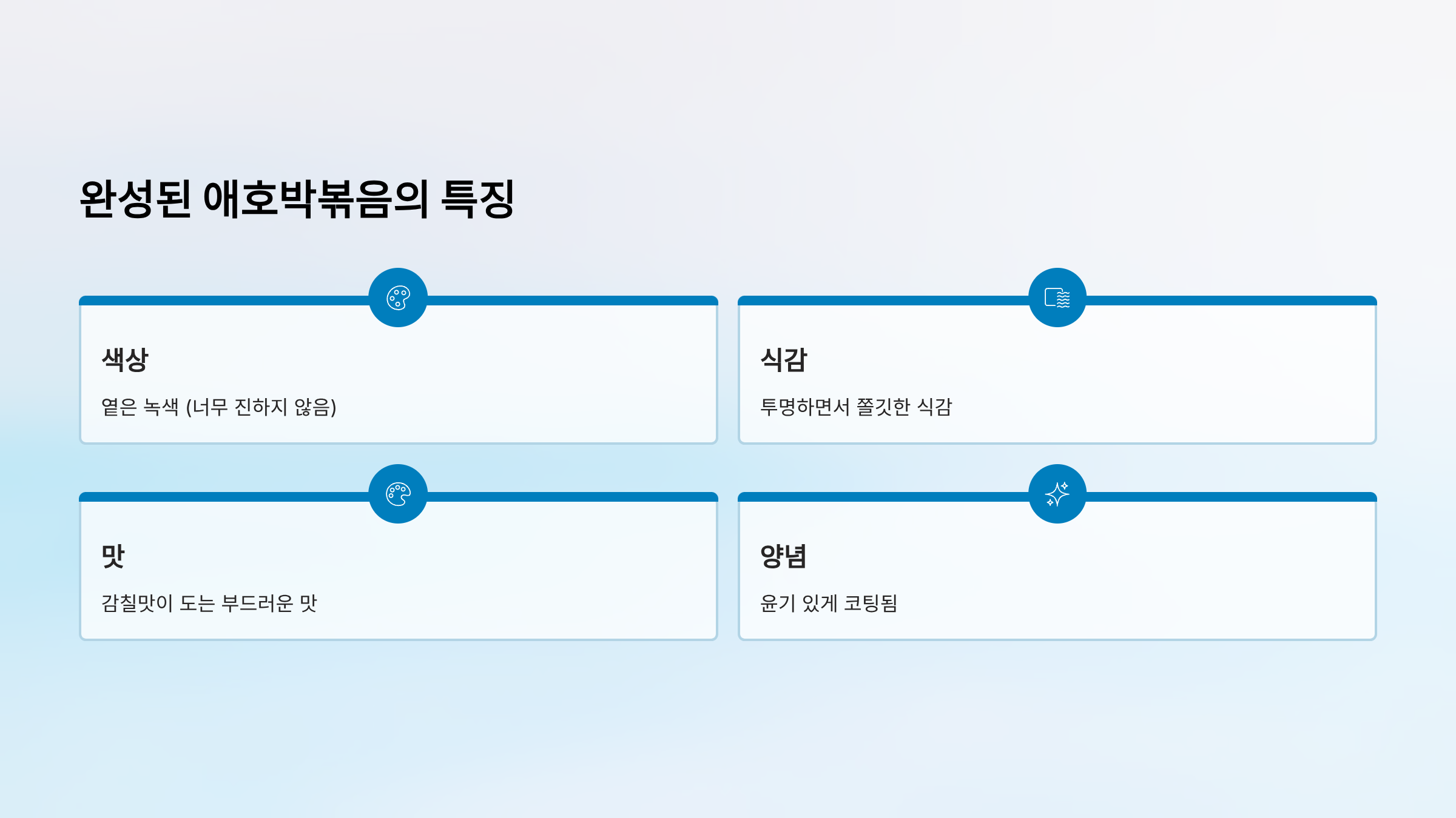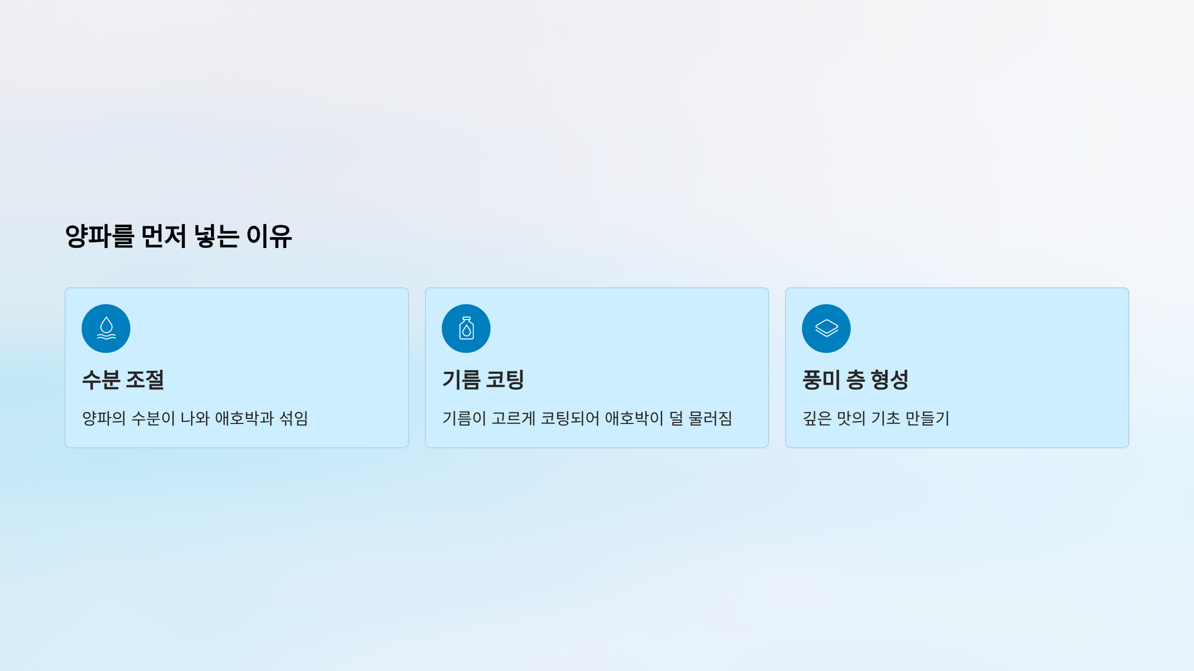 - 양파의 단맛이 나와야 애호박과 잘 어울림