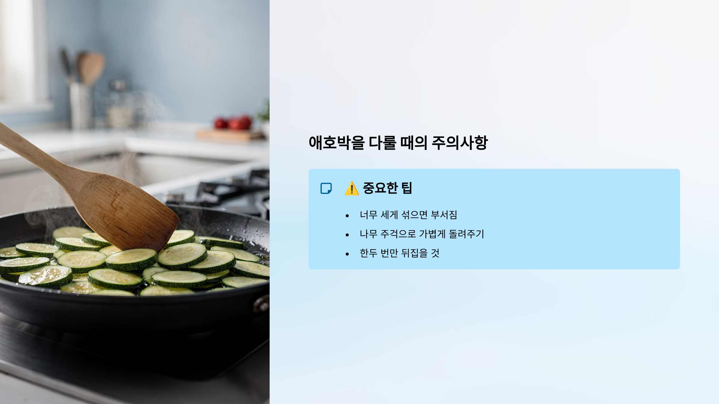 - 기름이 고르게 코팅되어 애호박이 덜 물러짐