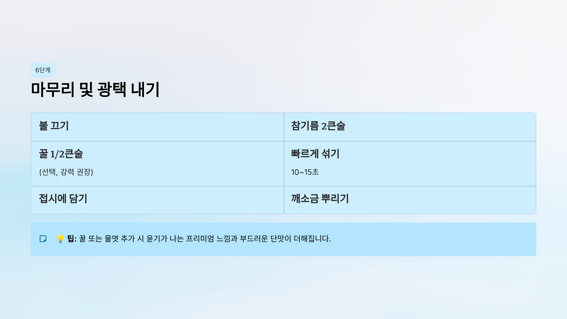 | 깨소금 | 1큰술 | 마무리 |
