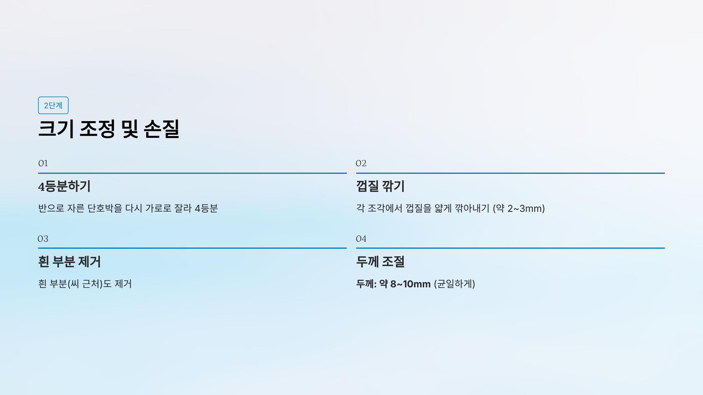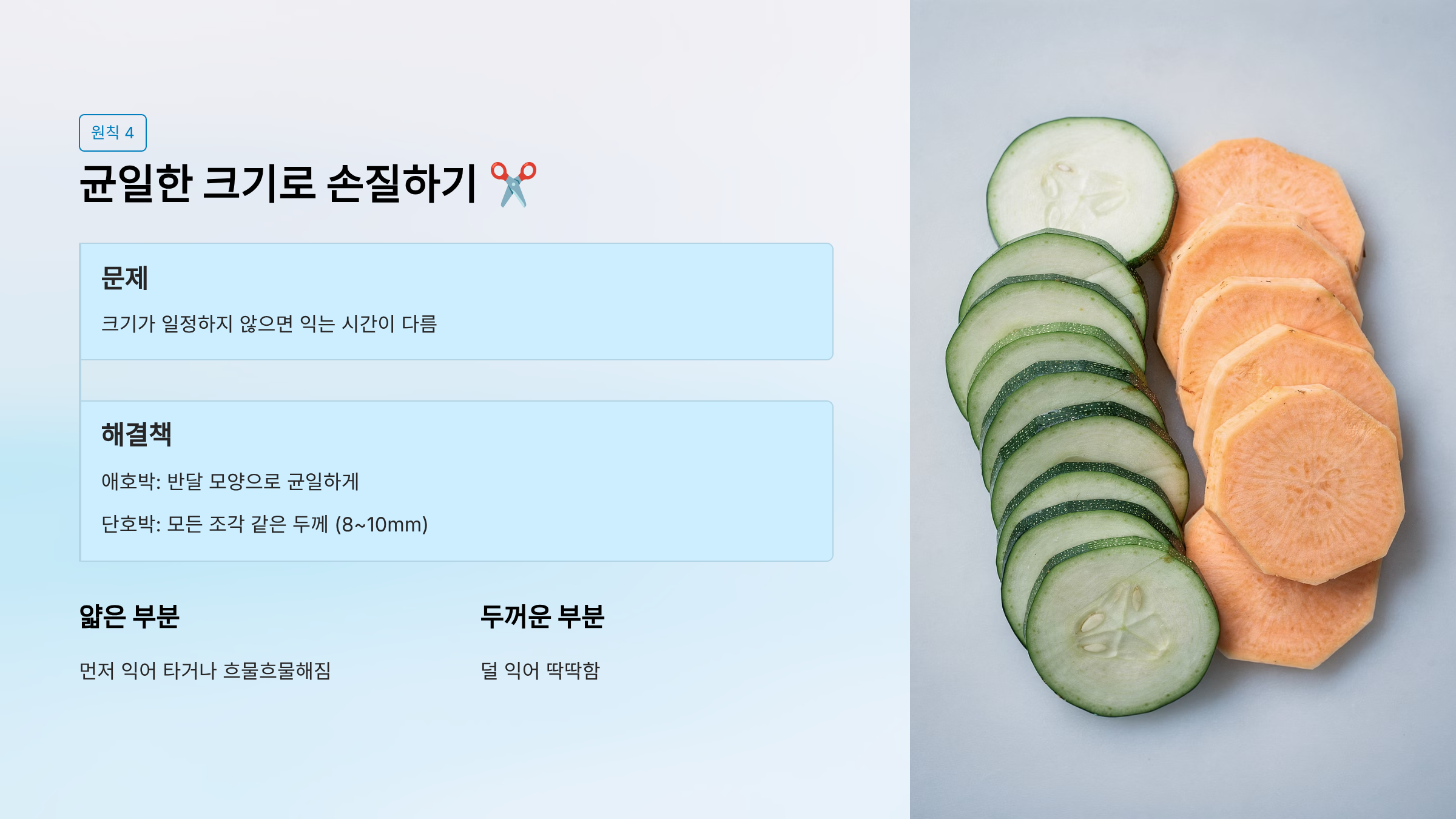 - 단호박: 모든 조각이 같은 두께 (약 8~10mm)