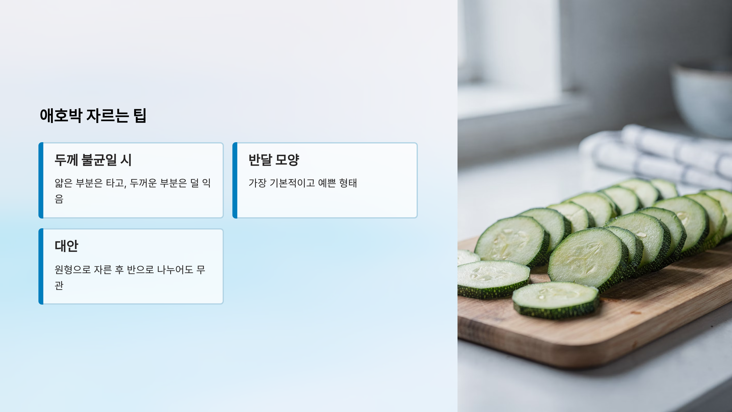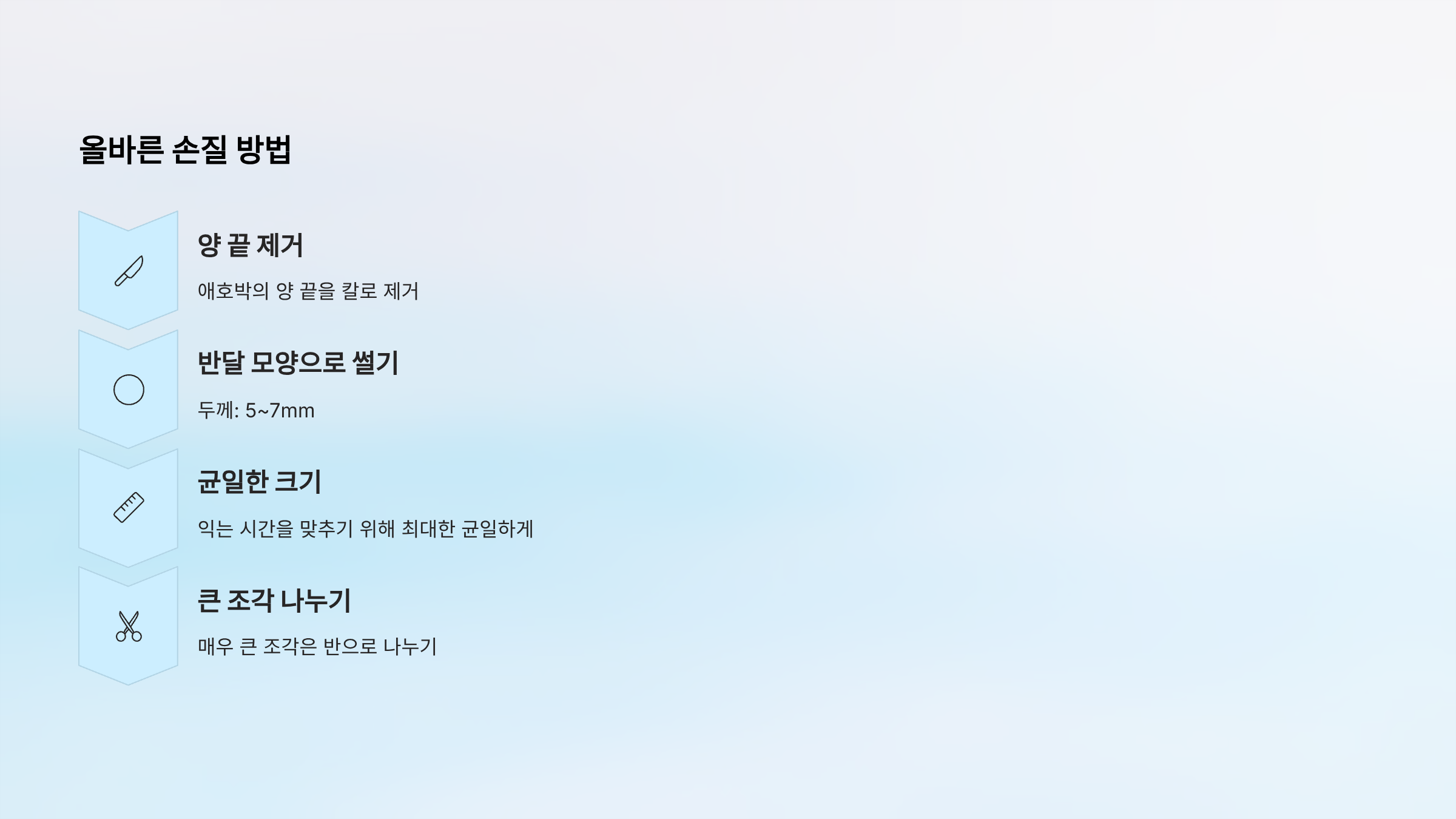 - 애호박: 최대한 반달 모양으로 균일하게