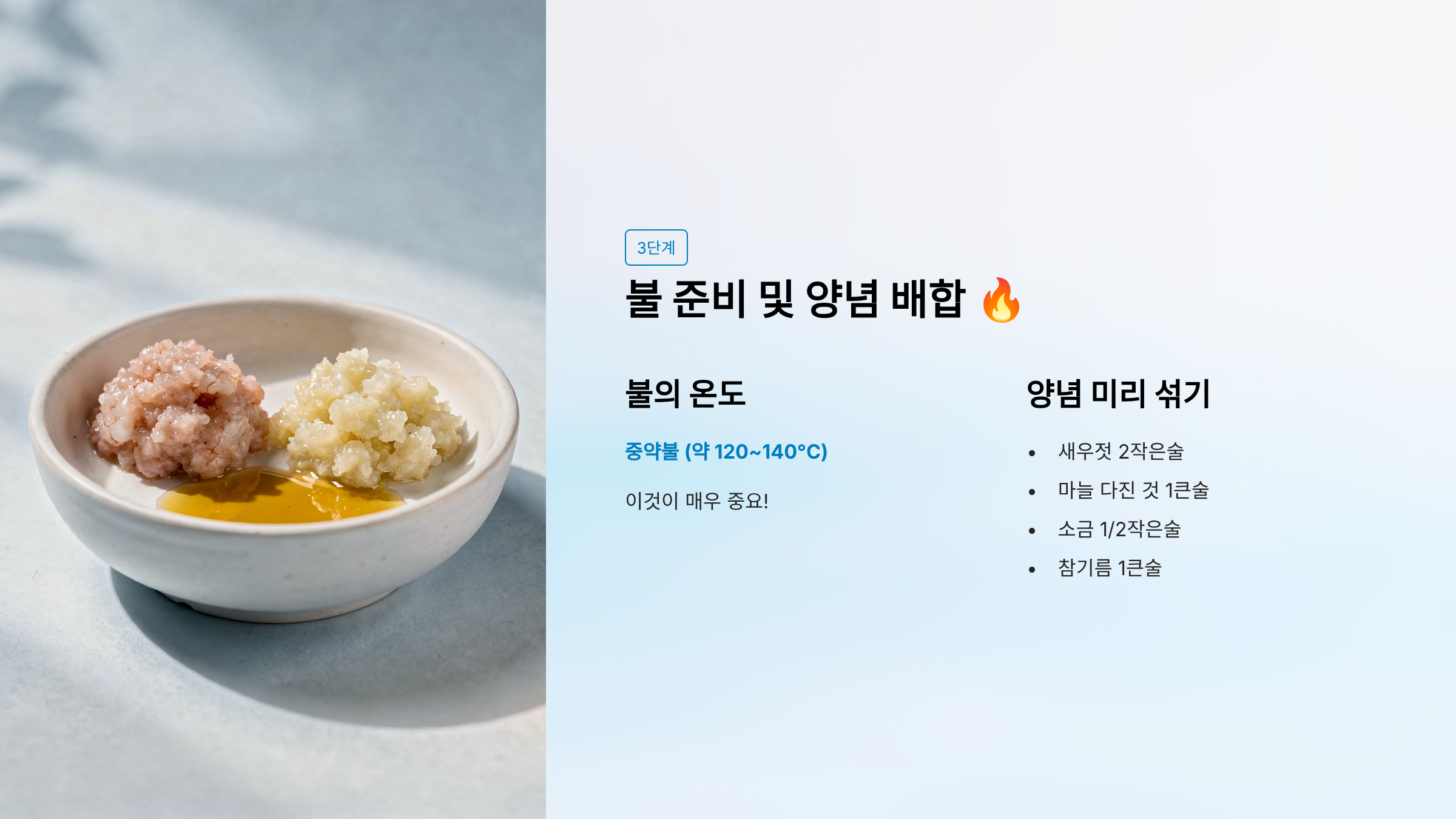 3단계: 불 준비 및 양념 배합 🔥