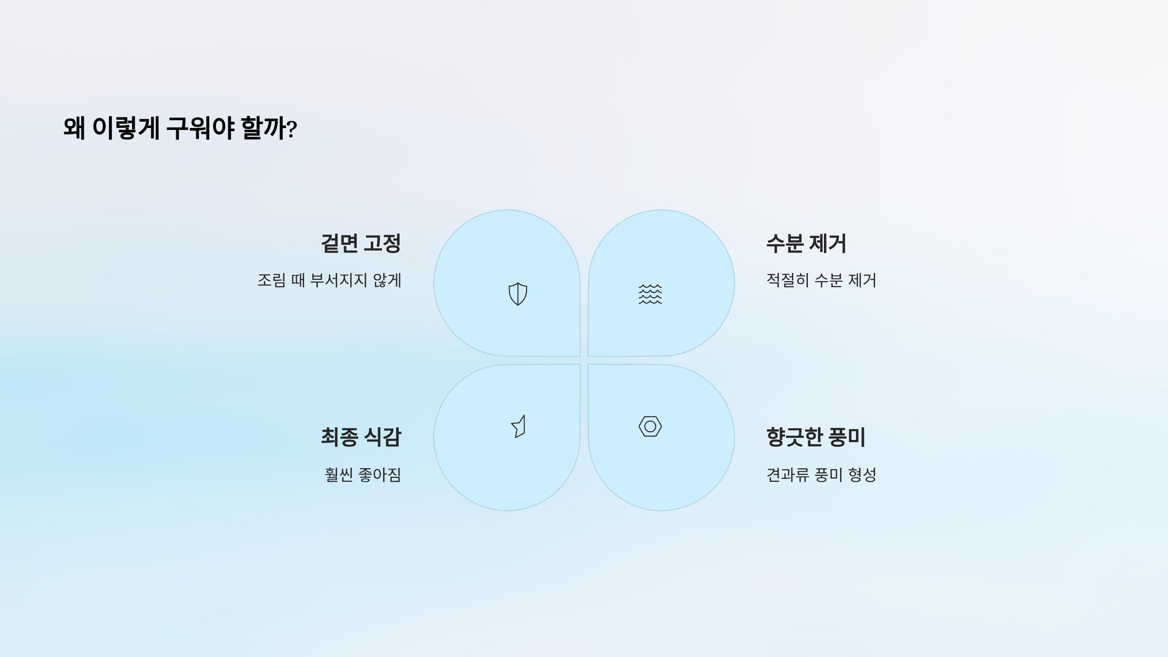 - 식감: 단단하면서 쫄깃함, 부서지지 않음