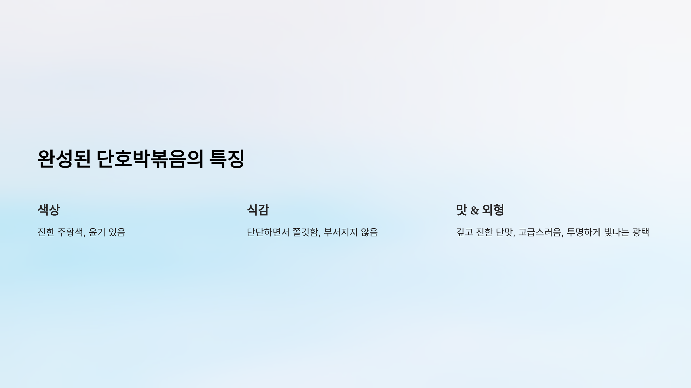 - 식감: 단단하고 호박 특유의 쫀득한 식감