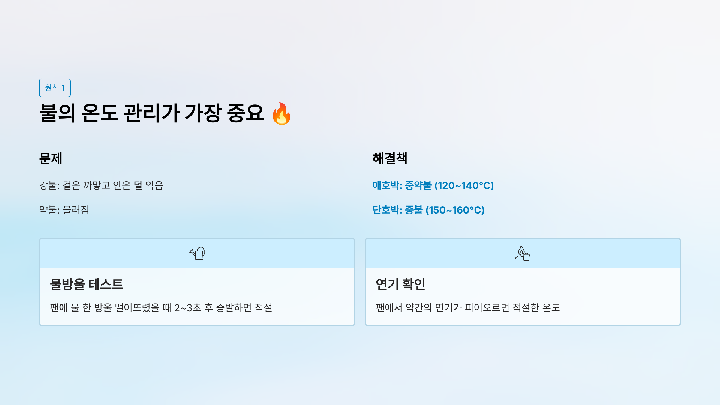 1. 불의 온도 관리가 가장 중요 🔥