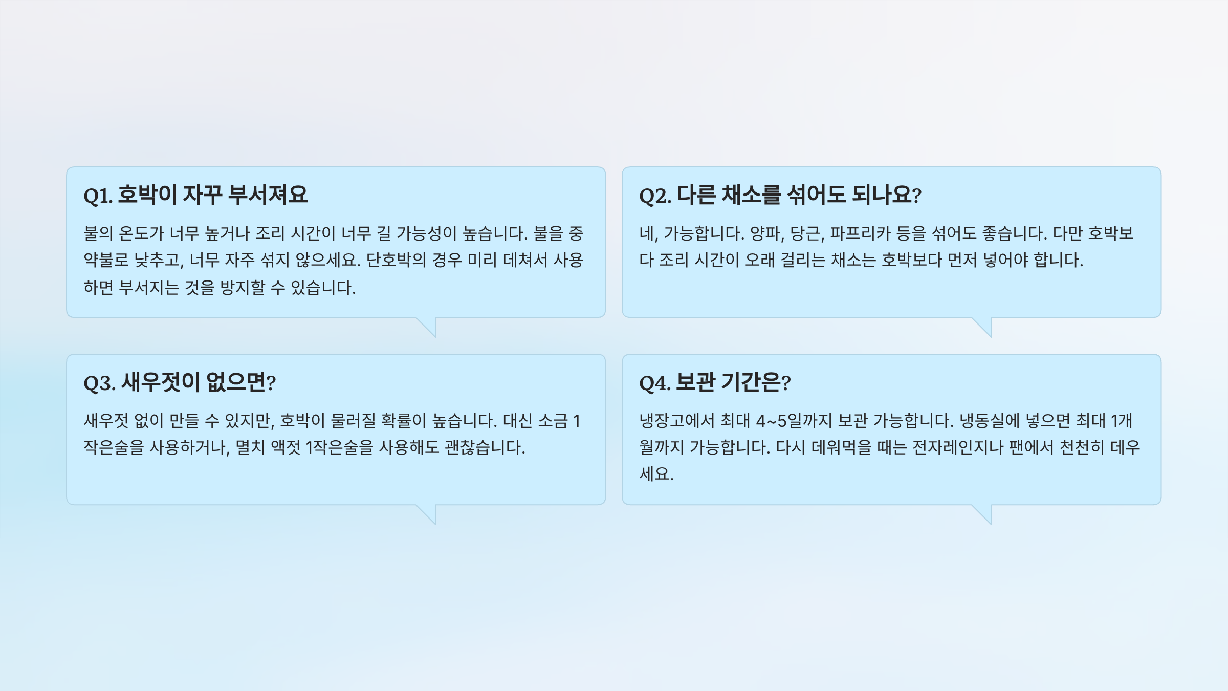 Q4. 호박볶음을 미리 만들어두면 몇 일까지 먹을 수 있나요?