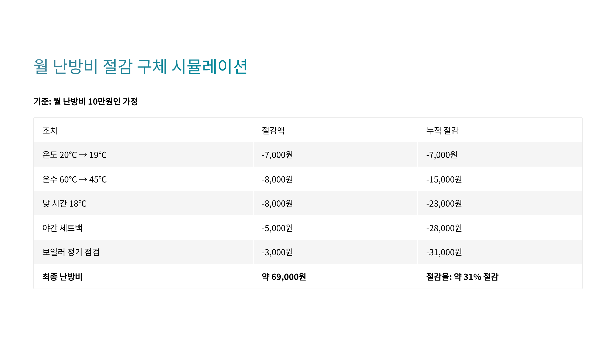 | 온수 60℃ → 45℃ | -8,000원 | -15,000원 |