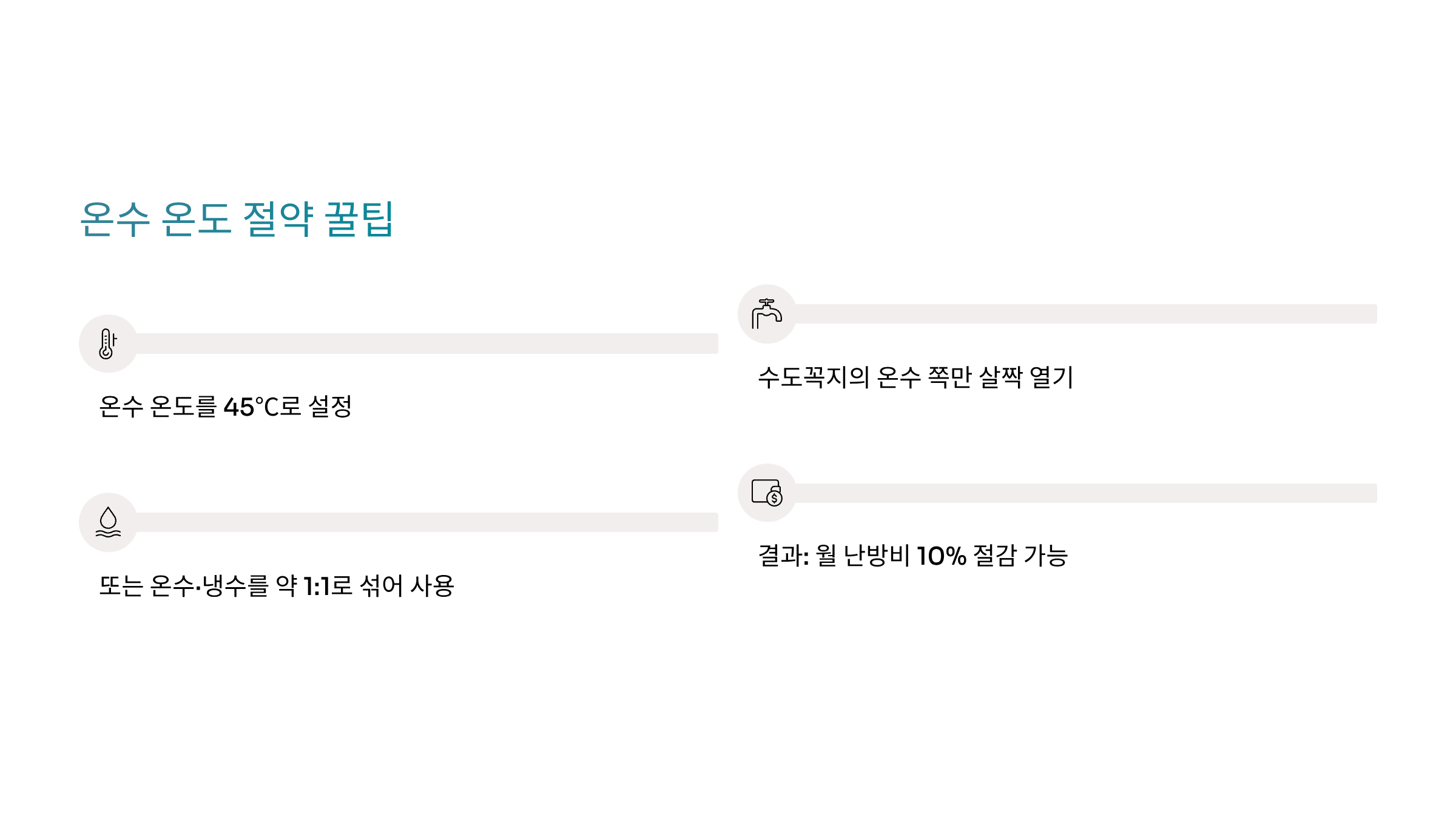 - 온수 온도 60℃는 불필요합니다 (40~50℃로도 충분)