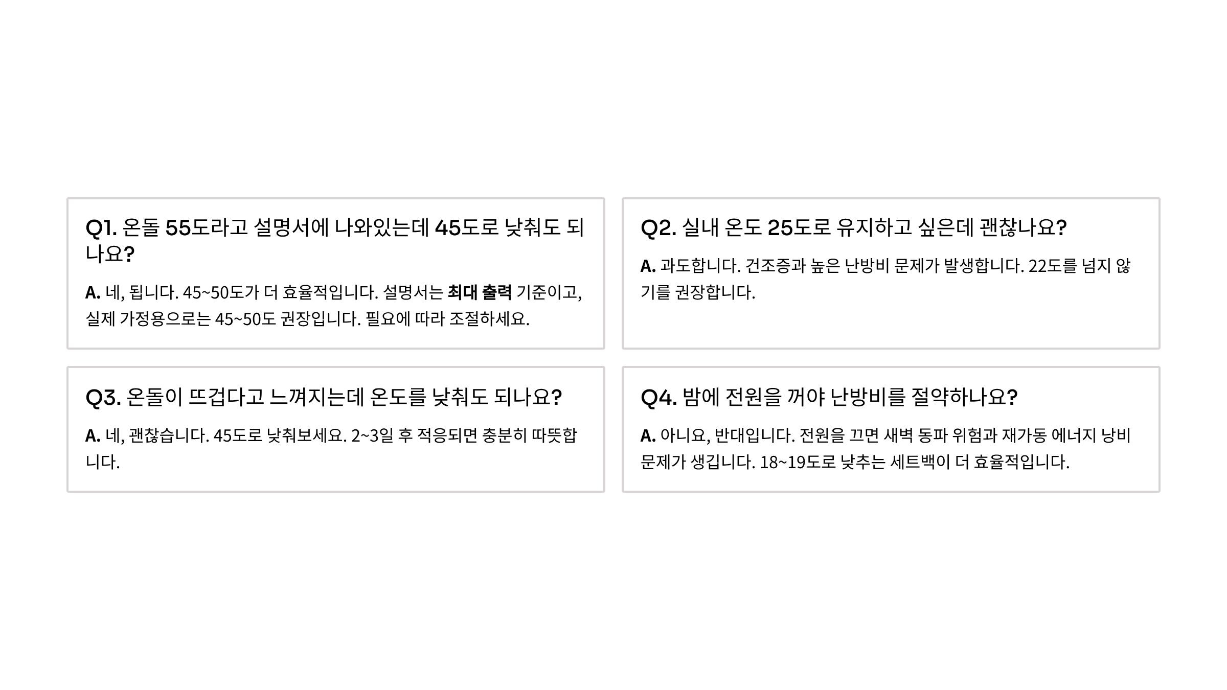 Q3. 온돌이 뜨겁다고 느껴지는데 온도를 낮춰도 되나요?
