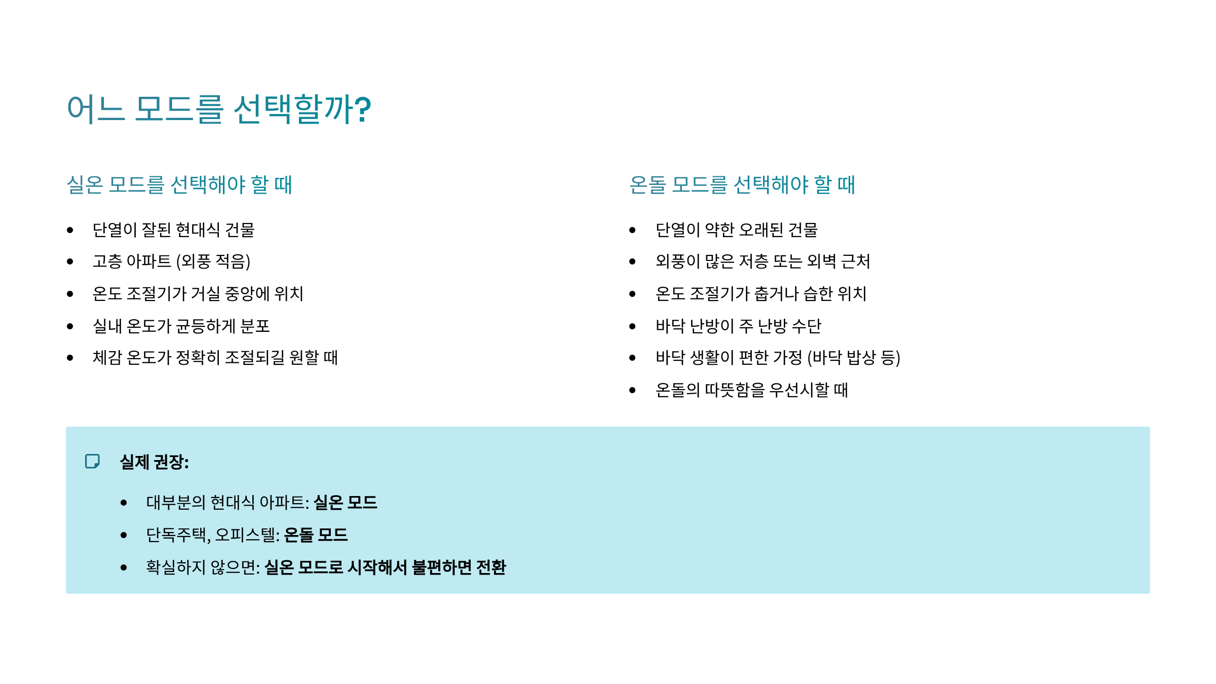 - ✅ 일정 온도 유지하는 방식이 더 경제적