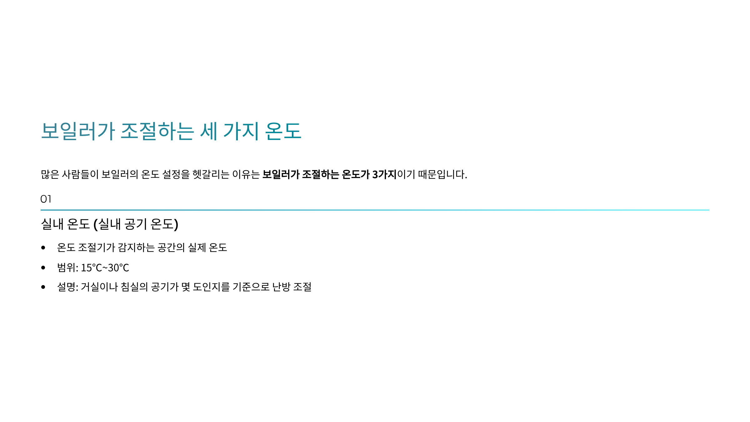 많은 사람들이 보일러의 온도 설정을 헷갈리는 이유는 보일러가 조절하는 온도가 3가지이기 때문입니다.