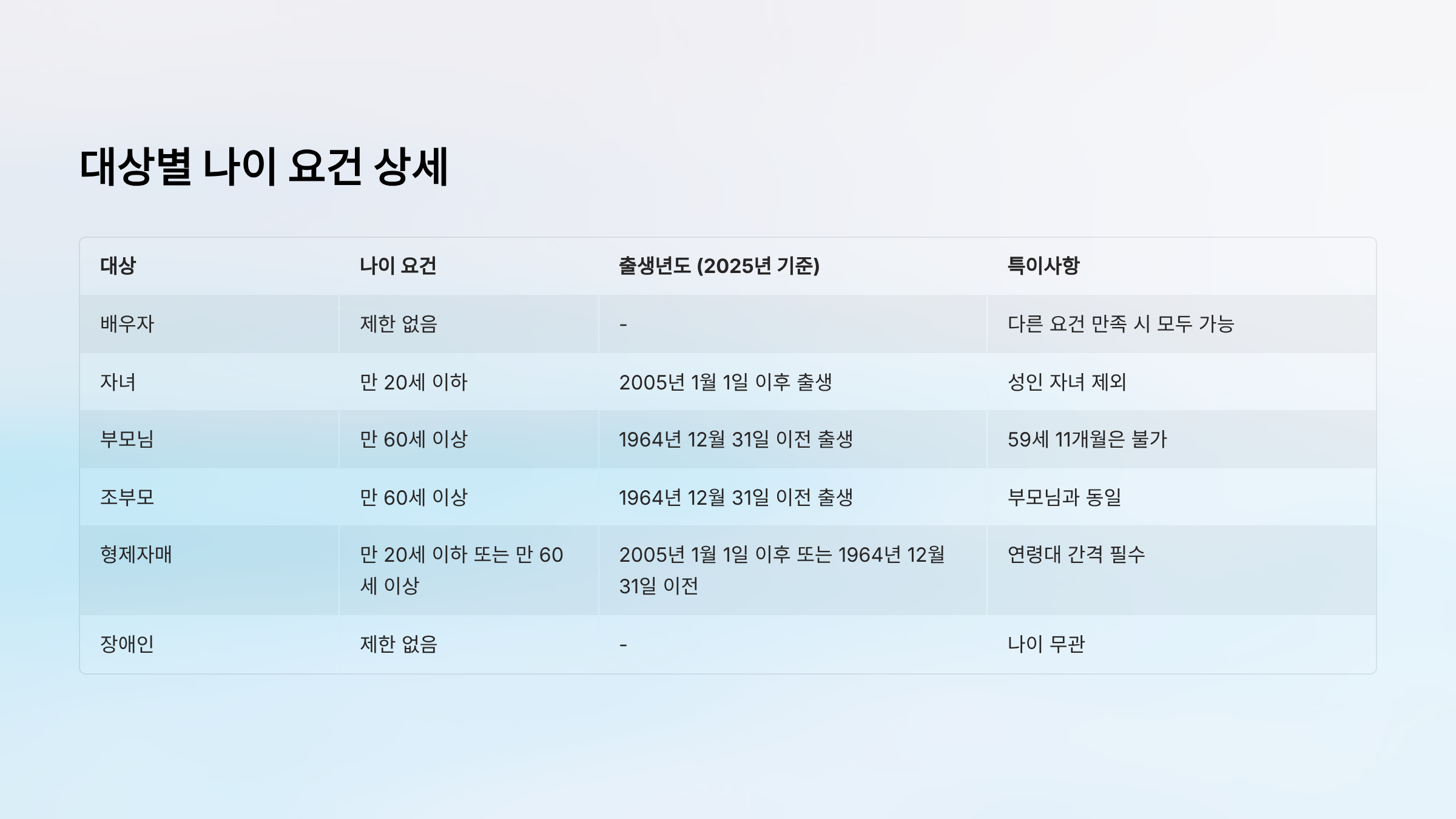 대상별 나이 요건: