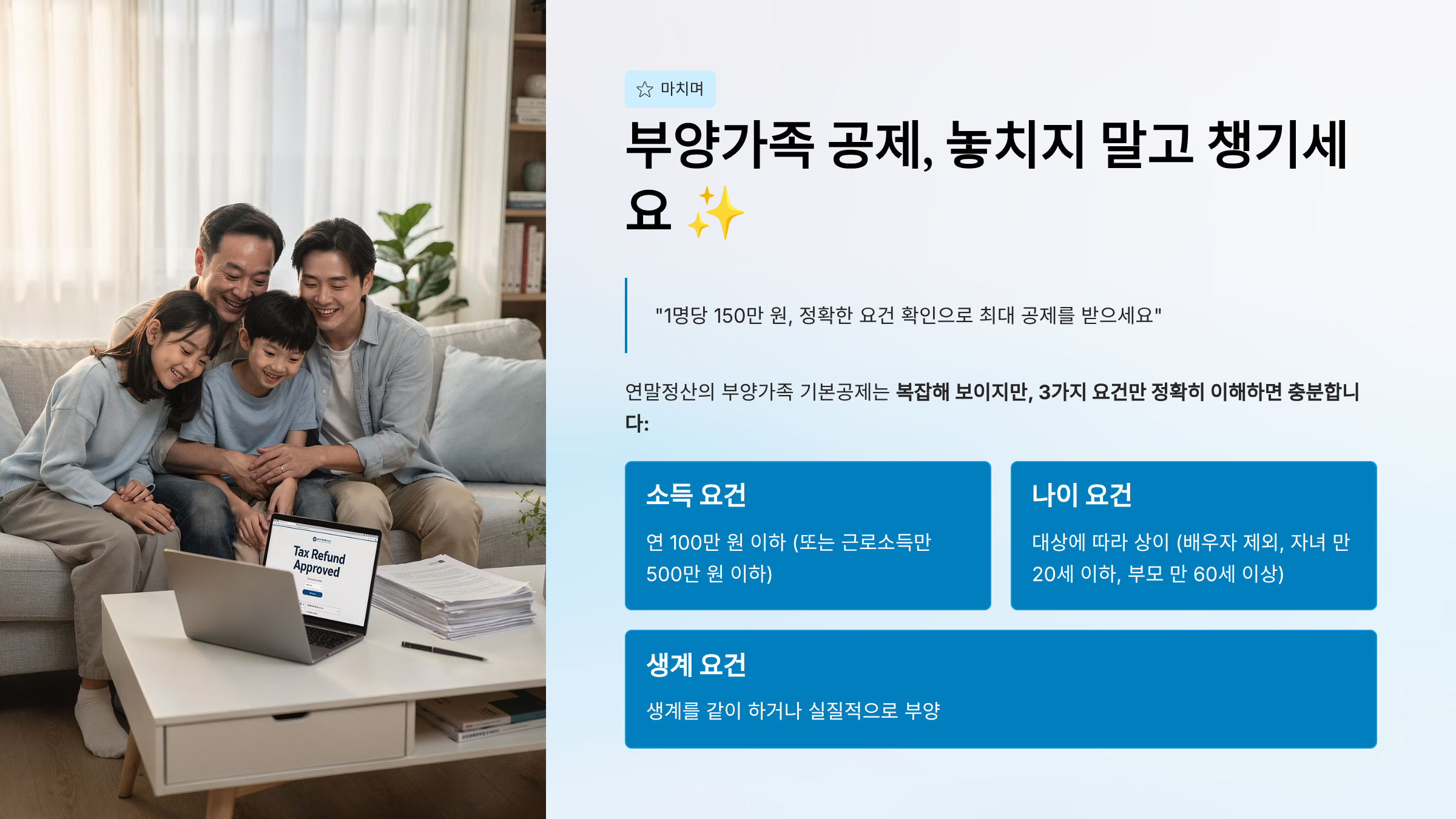 "부양가족이 있으면 150만 원 공제? 정말 내 가족이 해당될까?" 기본공제 요건 완벽 분석 🌟