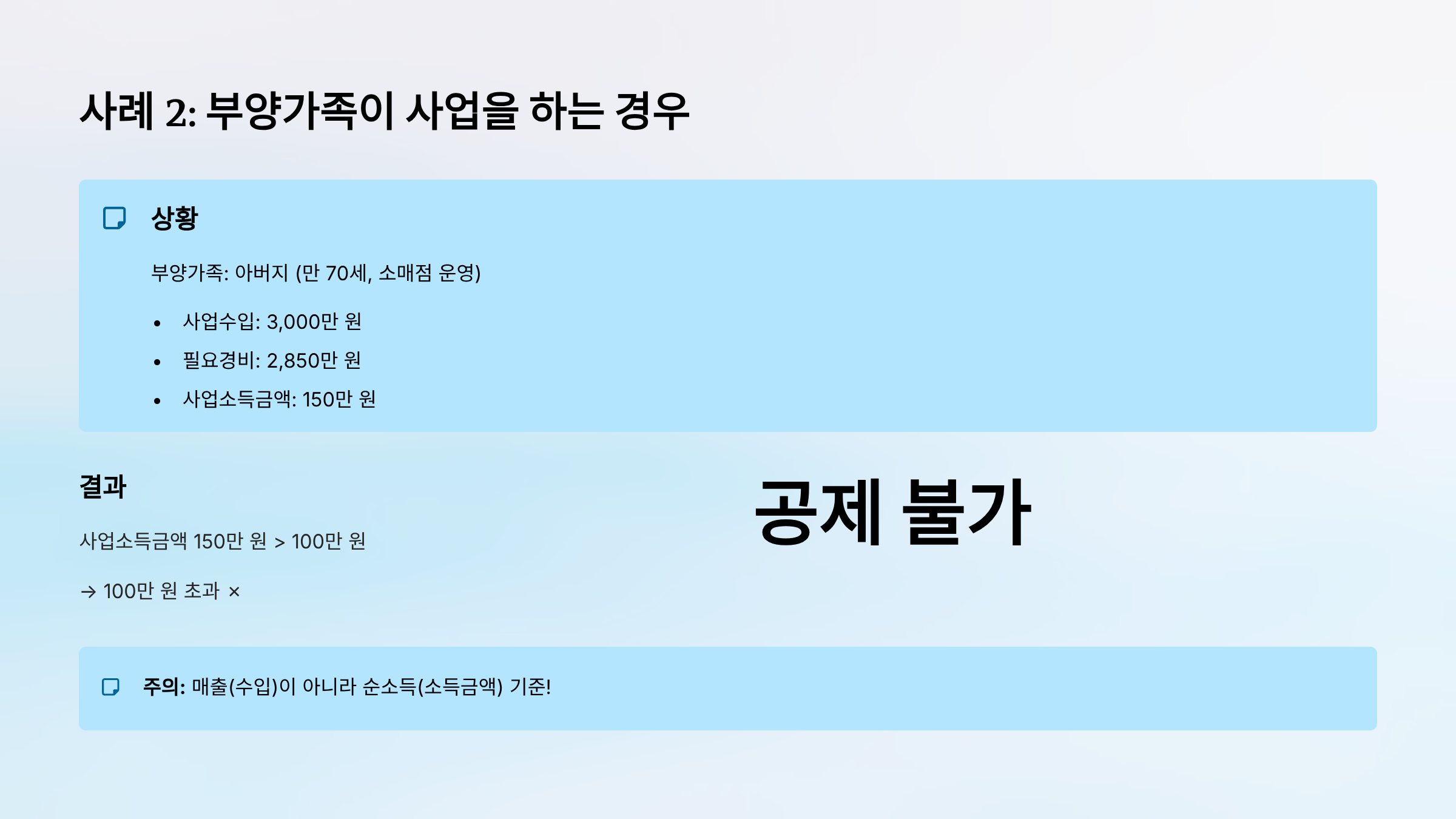 사례 2: 부양가족이 사업을 하는 경우