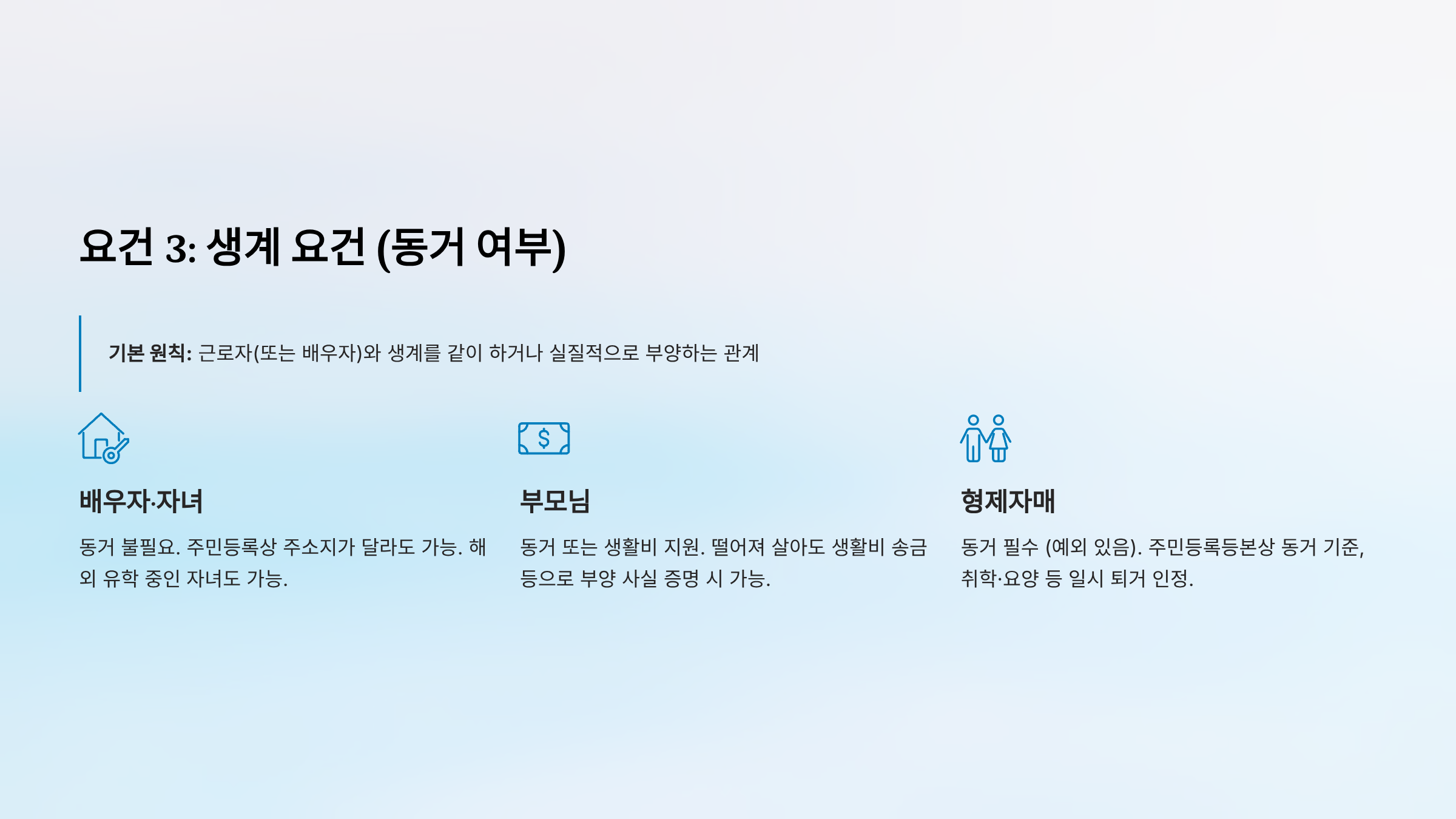요건 3: 생계 요건 (동거 여부)