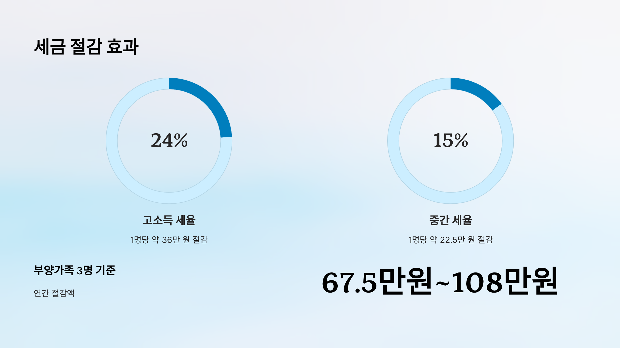 - 과세표준 기준 24% 세율 가정: 1명당 약 36만 원 절감