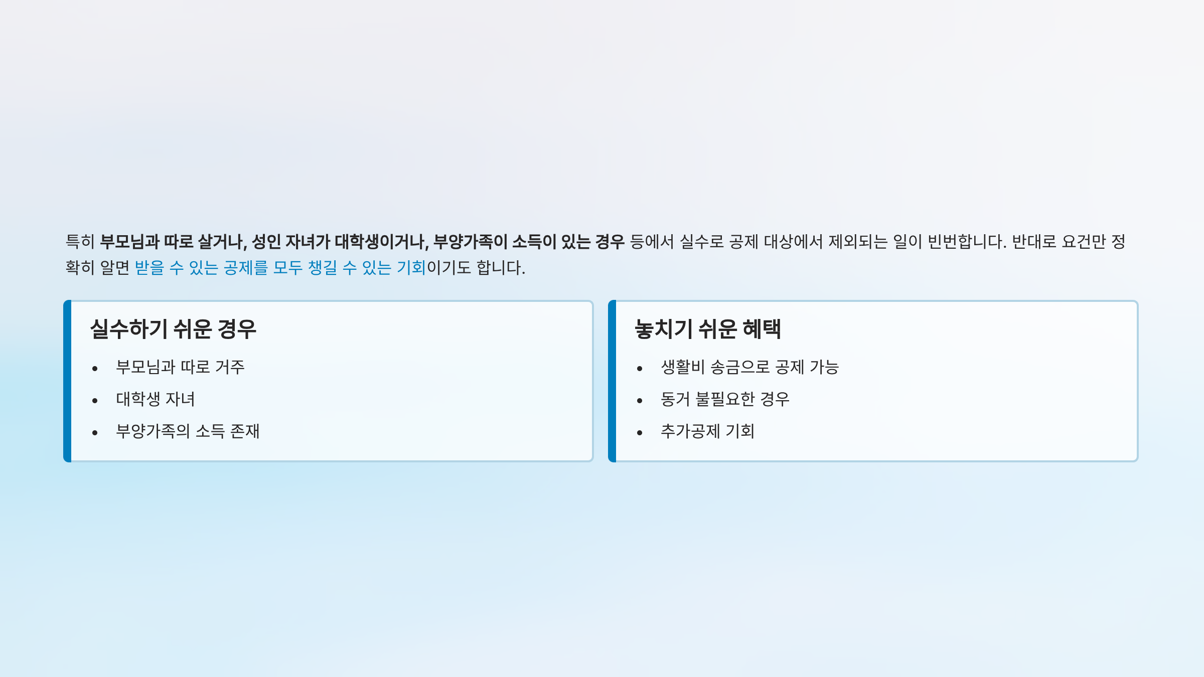 실수 2: "부모님 소득이 연금뿐이면?"