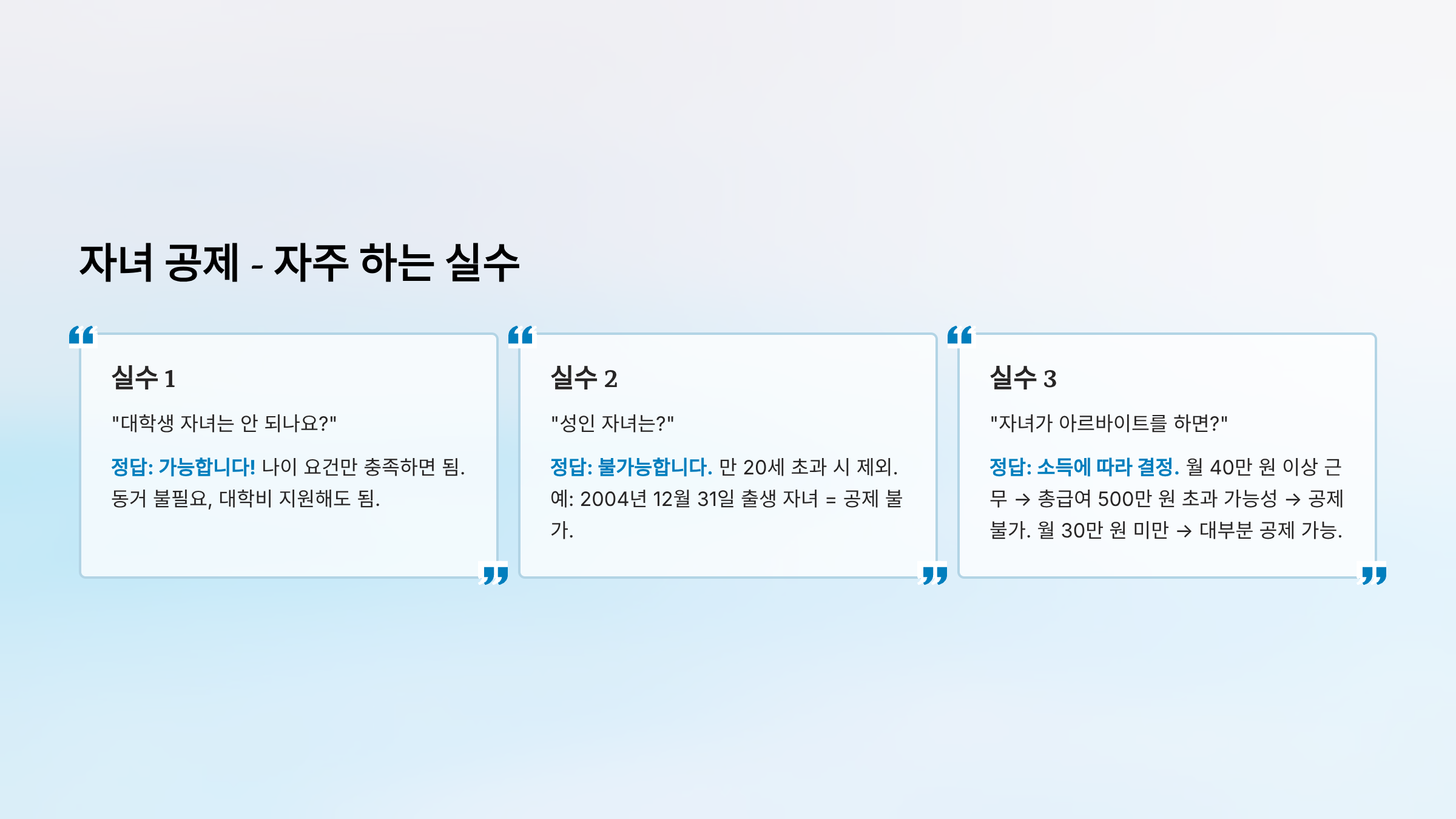 실수 3: "한 명의 부모님만 공제받을 수 있나요?"