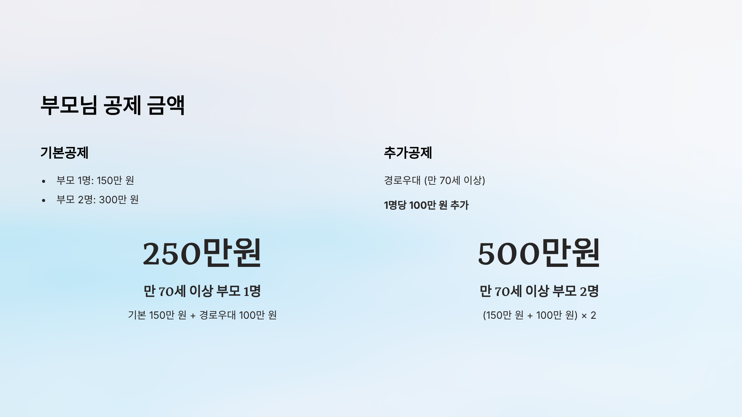 - 부모 2명 모두 공제 가능 (150만 원 × 2 = 300만 원)