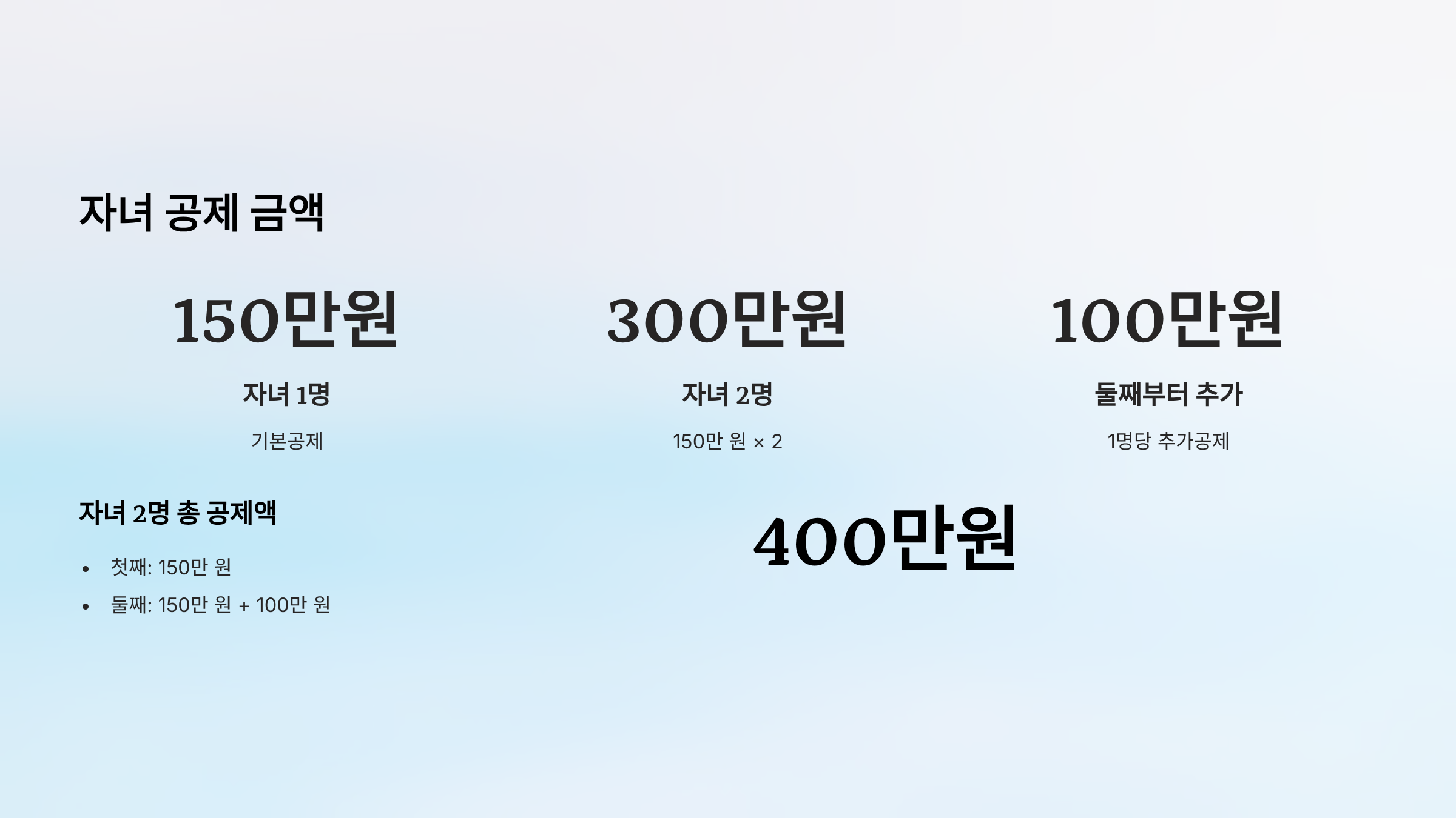 | 둘째 자녀 기본공제 | 150만 원 |
