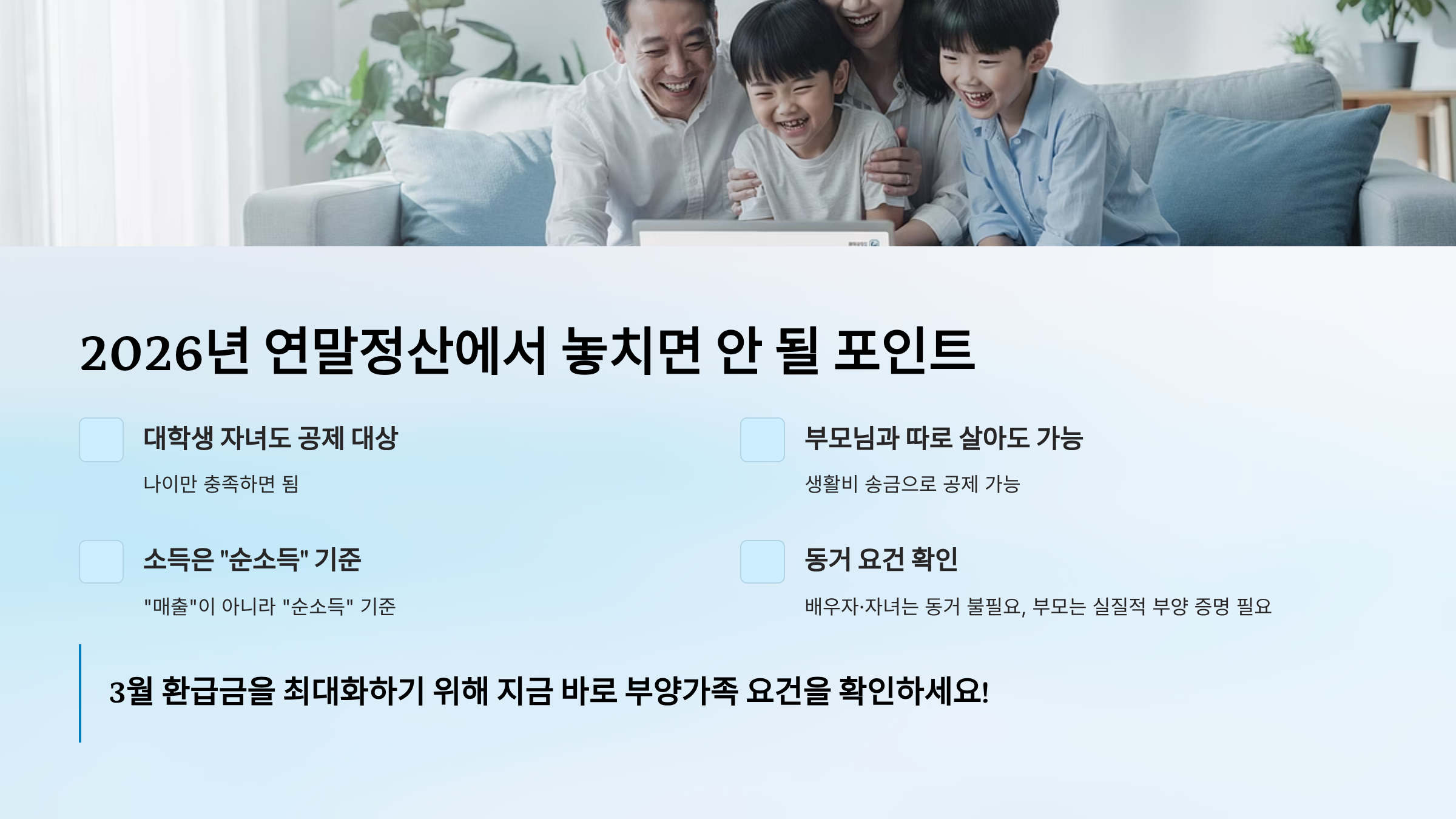 3월 환급금을 최대화하기 위해 지금 바로 부양가족 요건을 확인하세요!