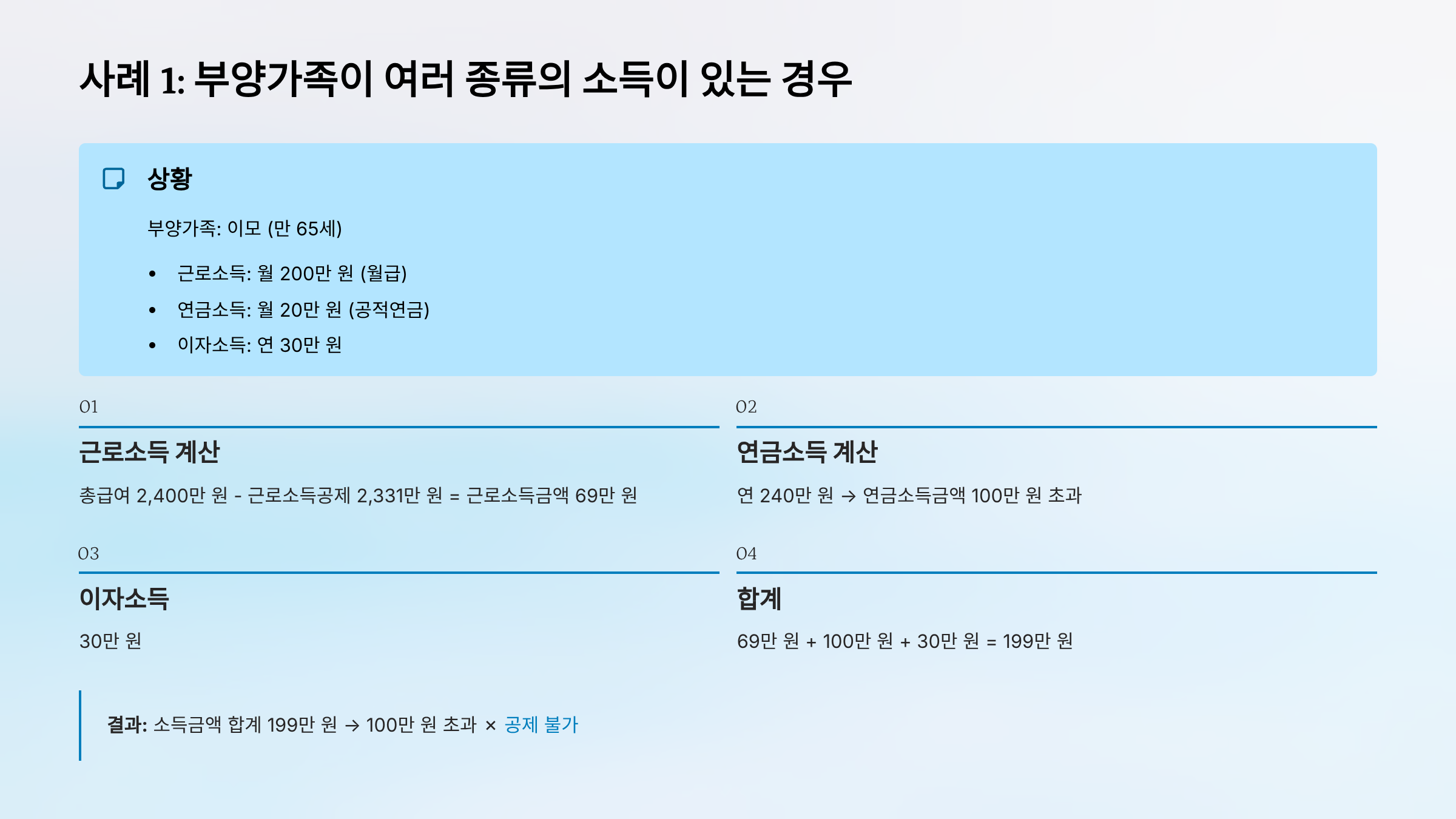 사례 1: 부양가족이 여러 종류의 소득이 있는 경우