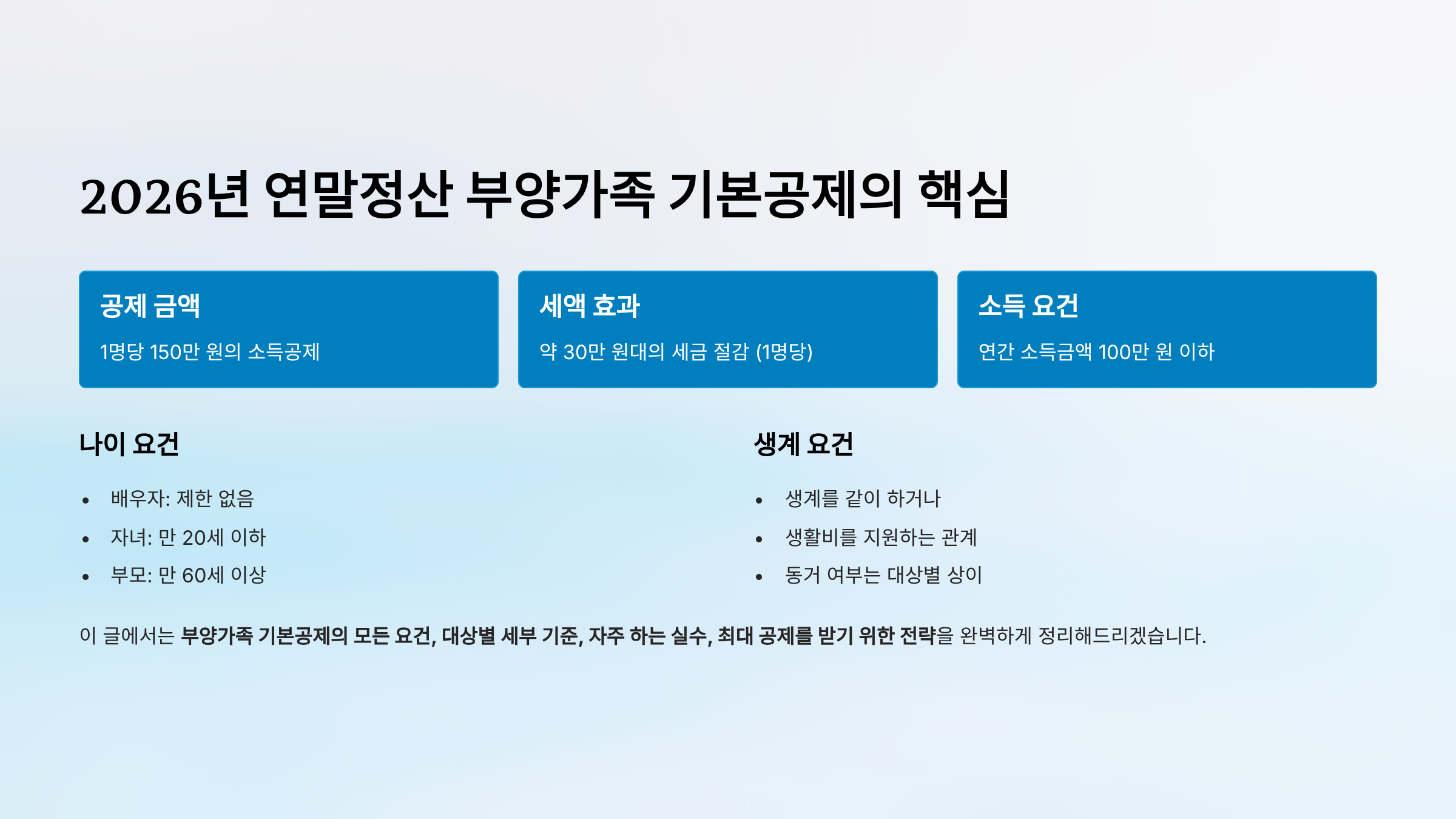 2026년 연말정산 부양가족 기본공제의 핵심: