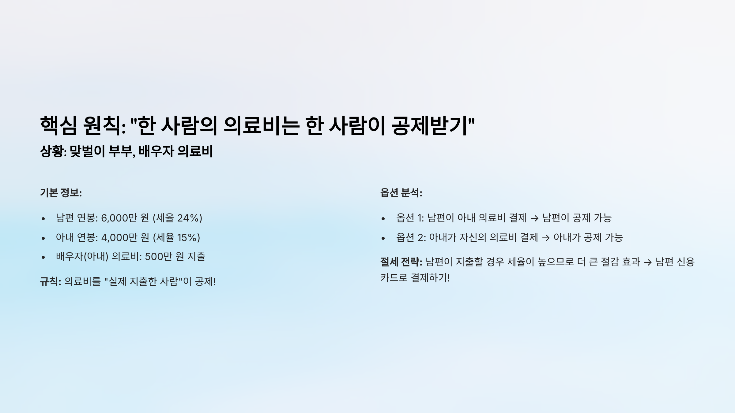 핵심 원칙: "한 사람의 의료비는 한 사람이 공제받기"