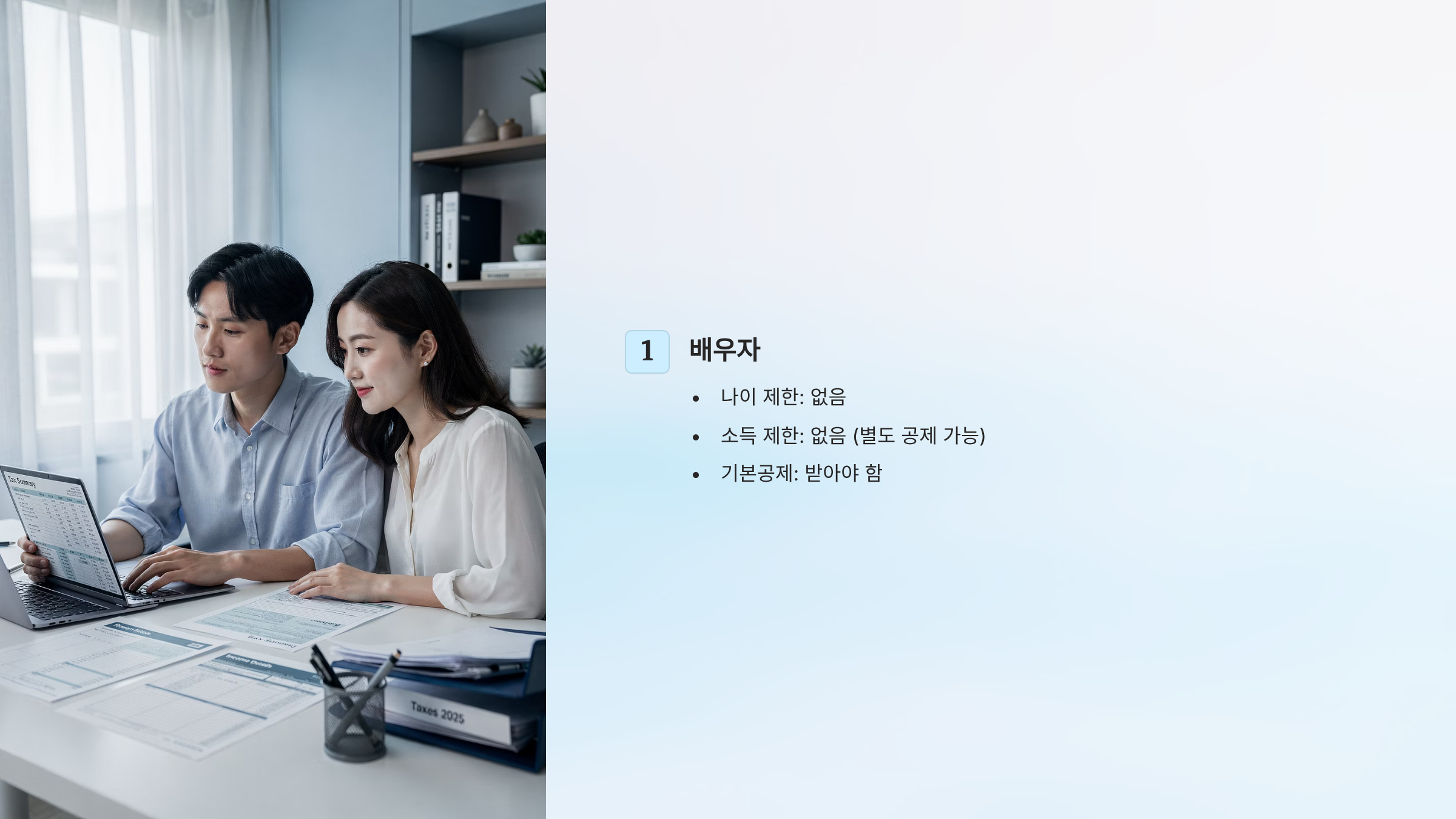 - 공제 대상자: 본인 + 기본공제 대상 가족 (나이·소득 제한 없음)