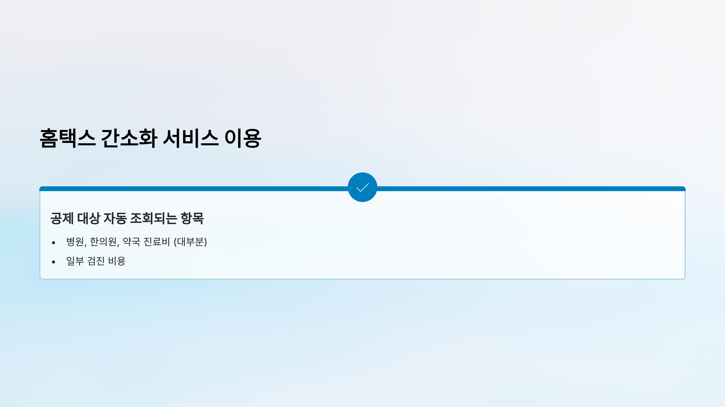 | 한의원 진료비 | ✓ | 없음 | 침, 뜸, 부항 등 포함 |