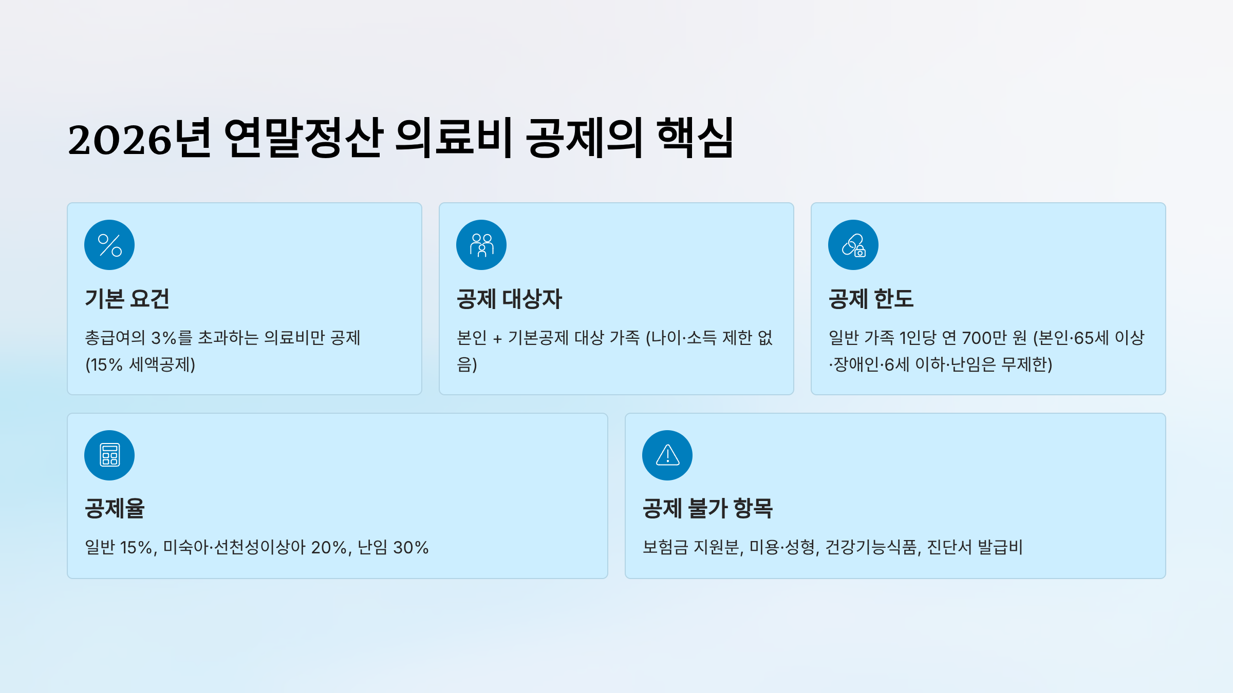 2026년 연말정산에서 의료비 공제는 준비한 만큼 돌려받는 가장 정직한 항목입니다.