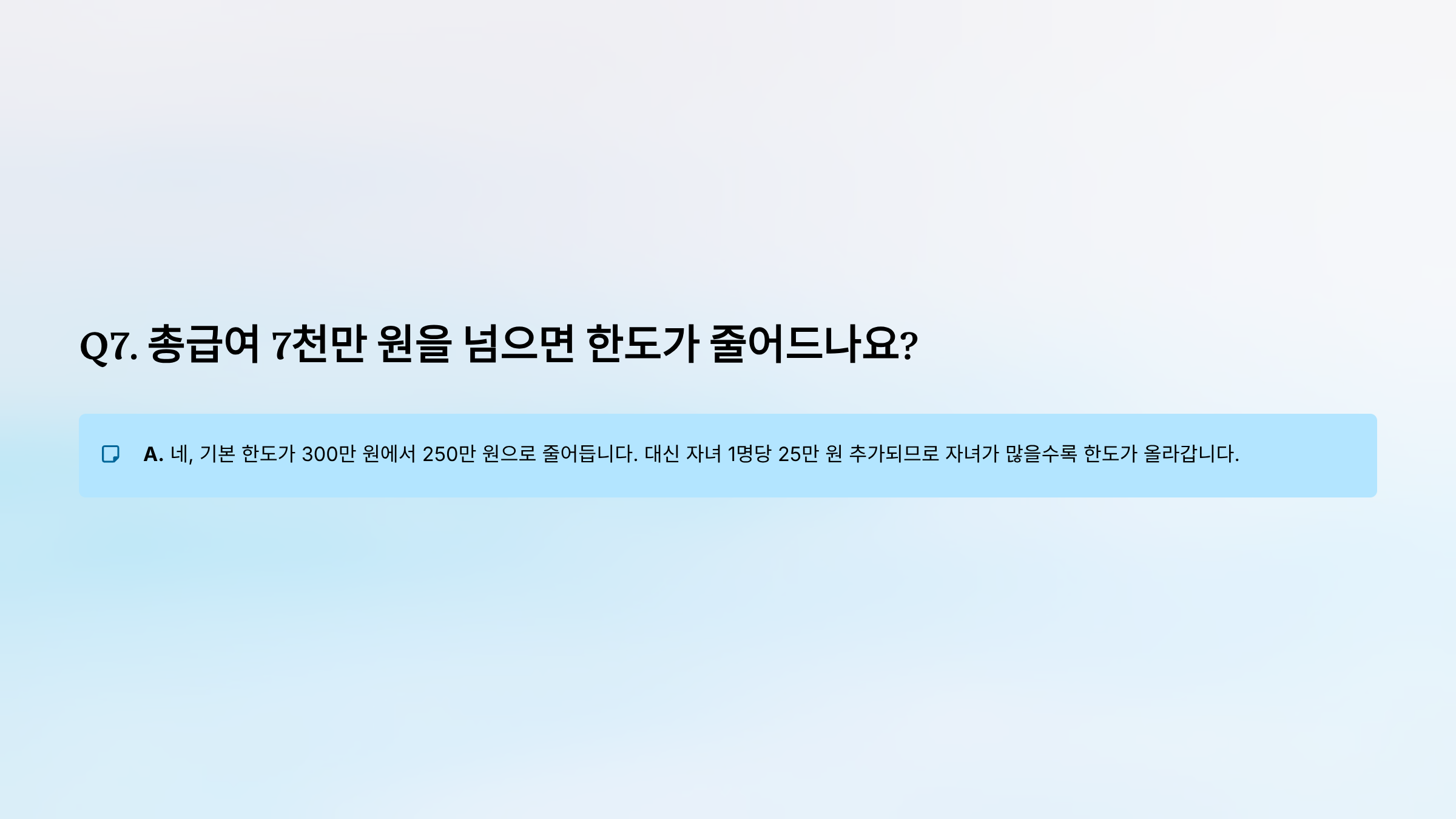 Q7. 총급여 7천만 원을 넘으면 한도가 줄어드나요?