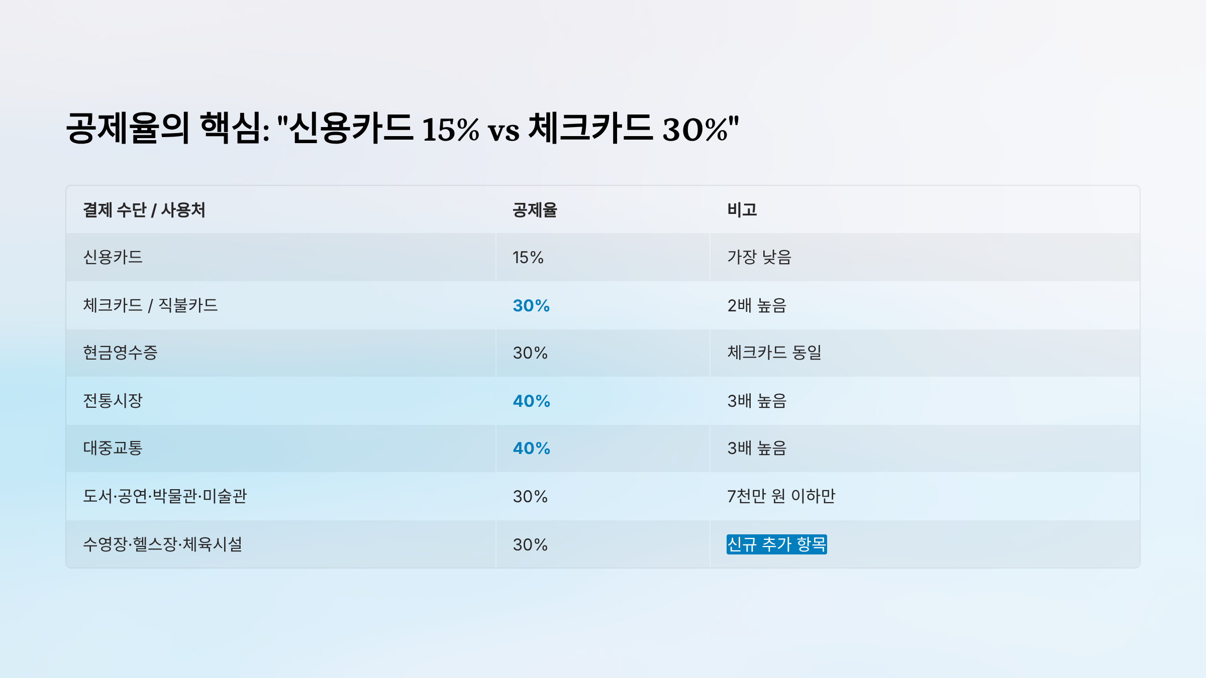 공제율의 핵심: "신용카드 15% vs 체크카드 30%"