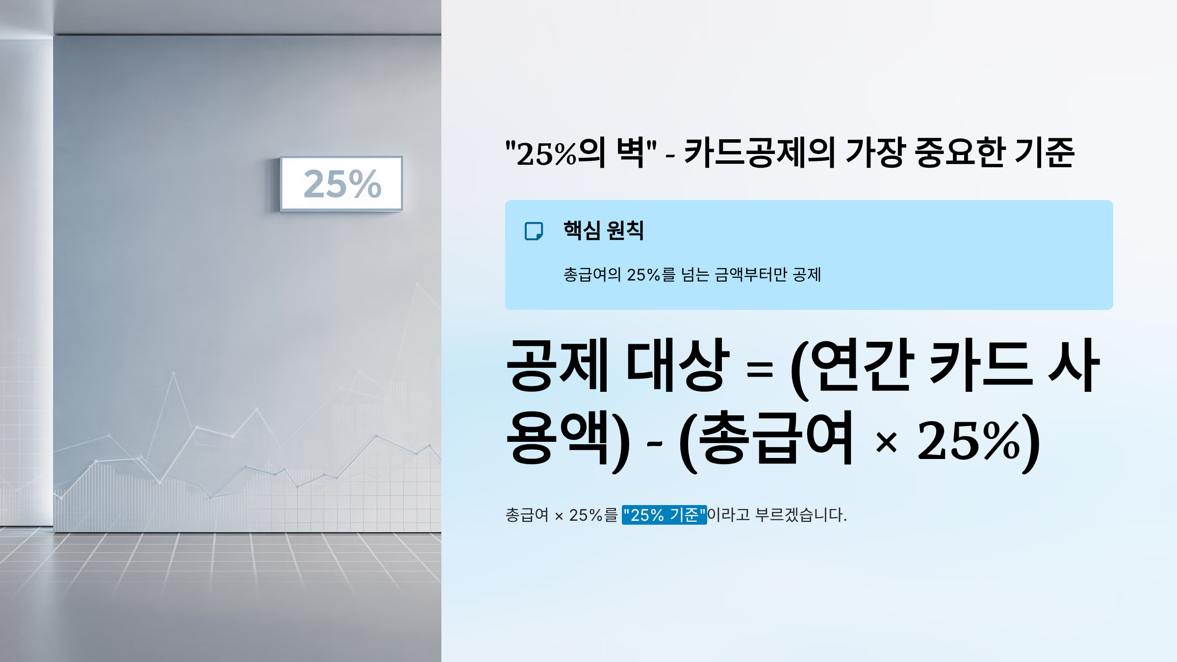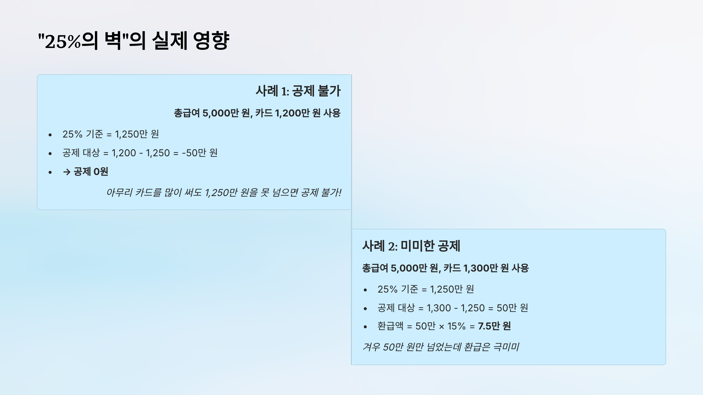 핵심 원칙: 총급여의 25%를 넘는 금액부터만 공제