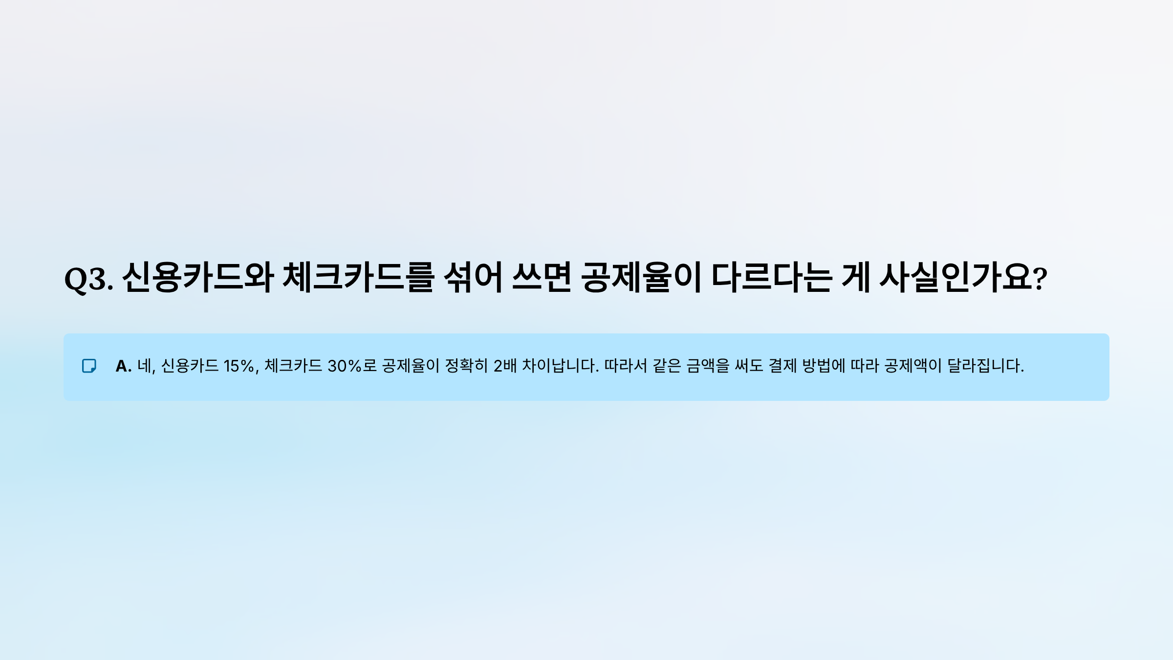 Q3. 신용카드와 체크카드를 섞어 쓰면 공제율이 다르다는 게 사실인가요?