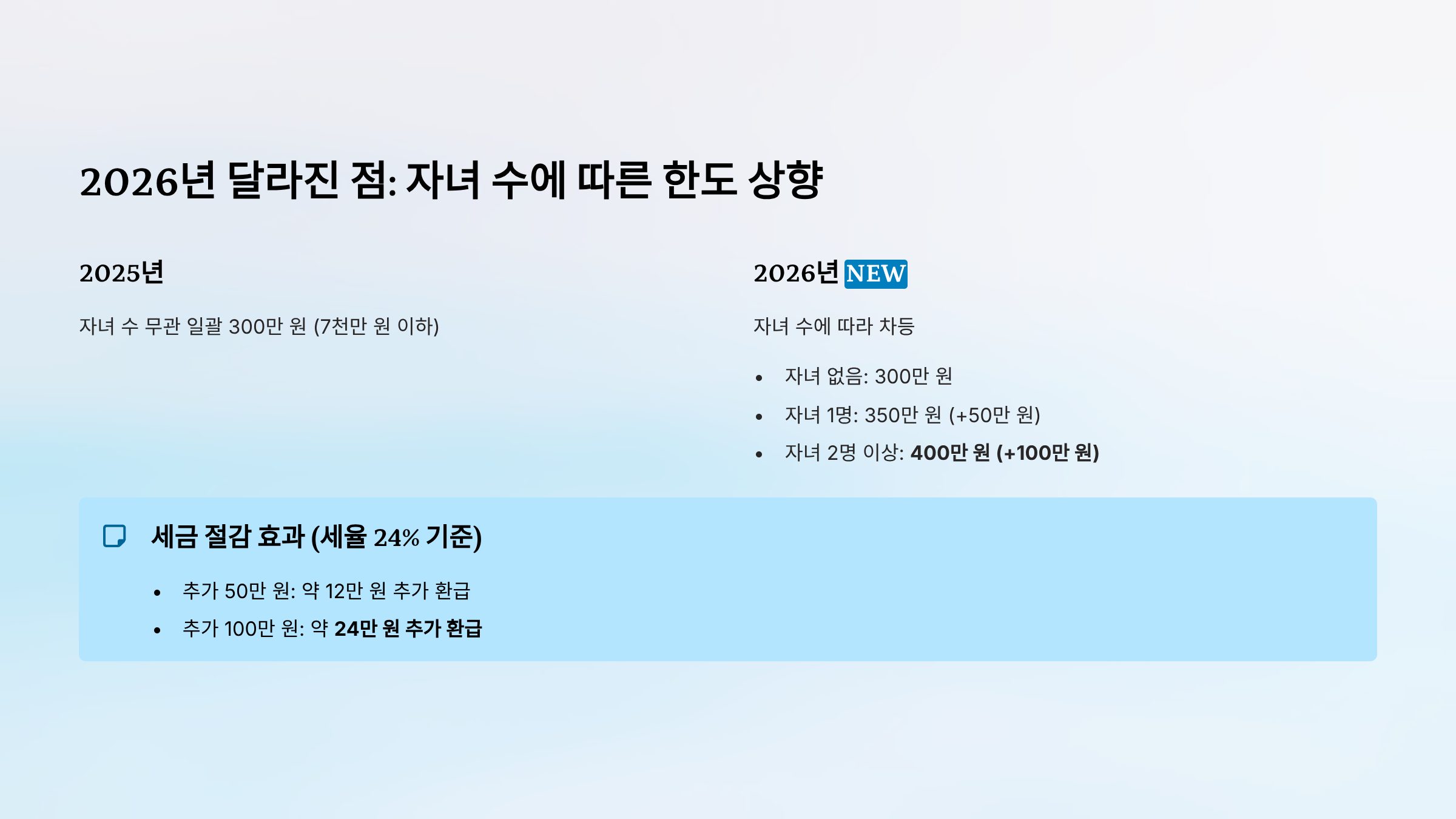 2026년 달라진 점: 자녀 수에 따른 한도 상향
