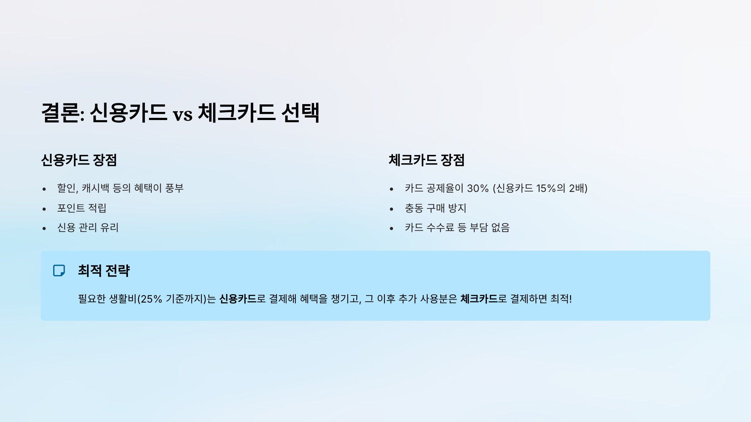 ✅ 신용카드 vs 체크카드 사용 비율을 최적화했나?