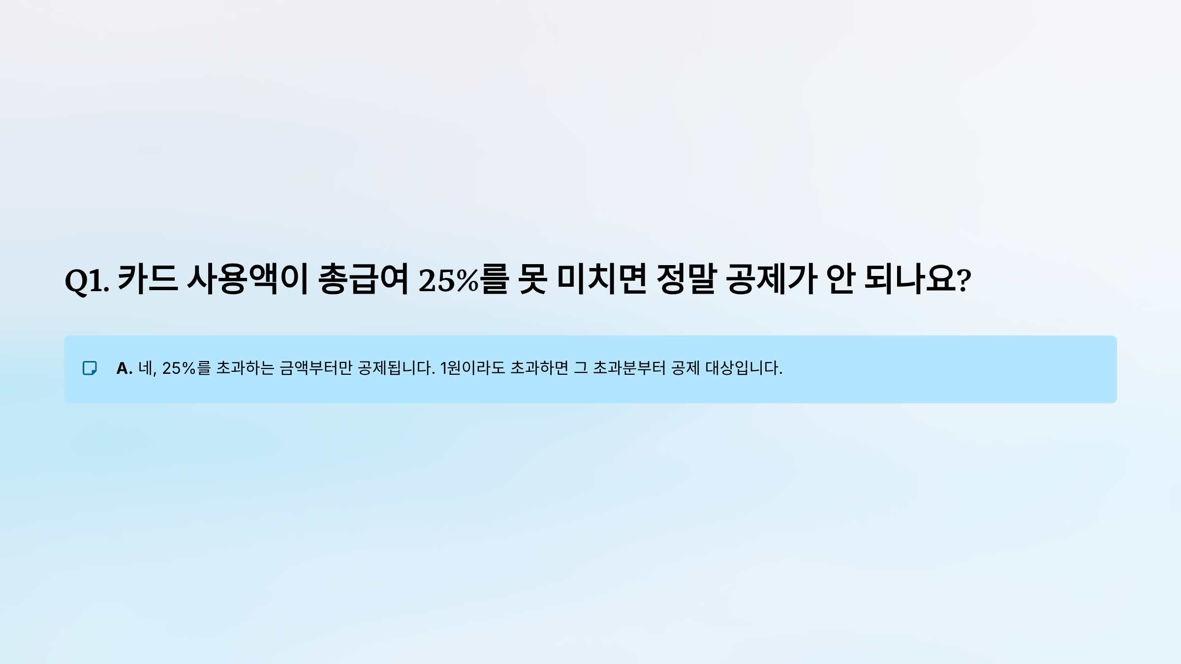 Q1. 카드 사용액이 총급여 25%를 못 미치면 정말 공제가 안 되나요?