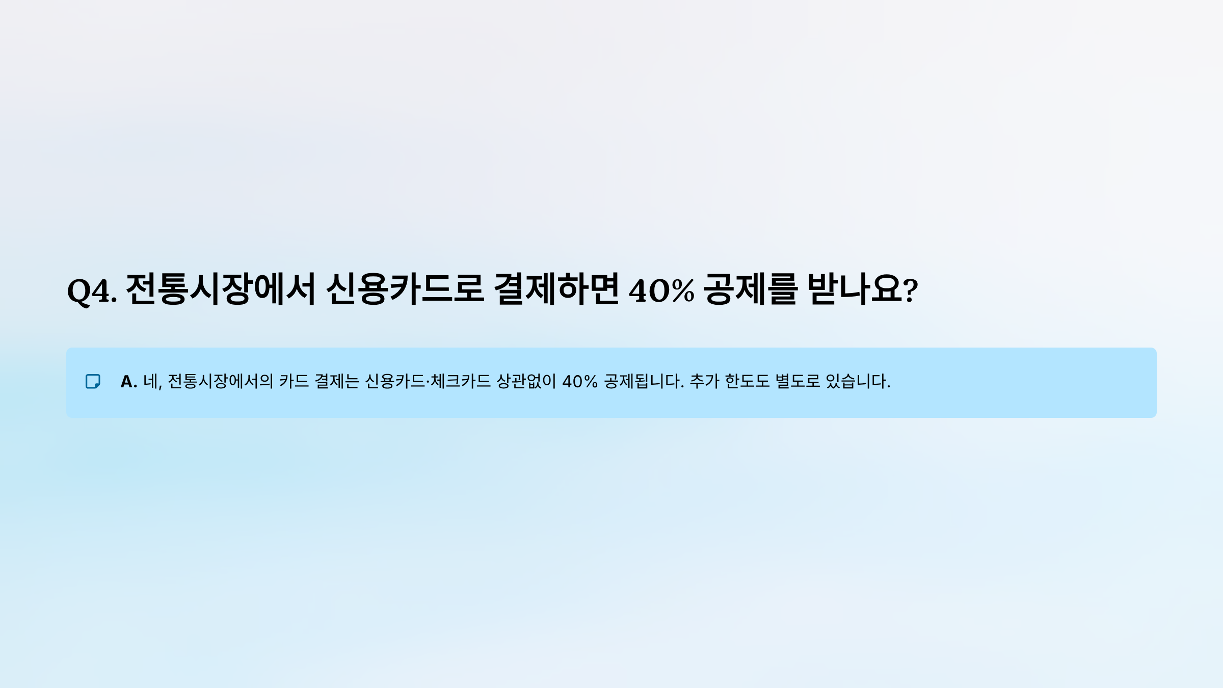 Q4. 전통시장에서 신용카드로 결제하면 40% 공제를 받나요?