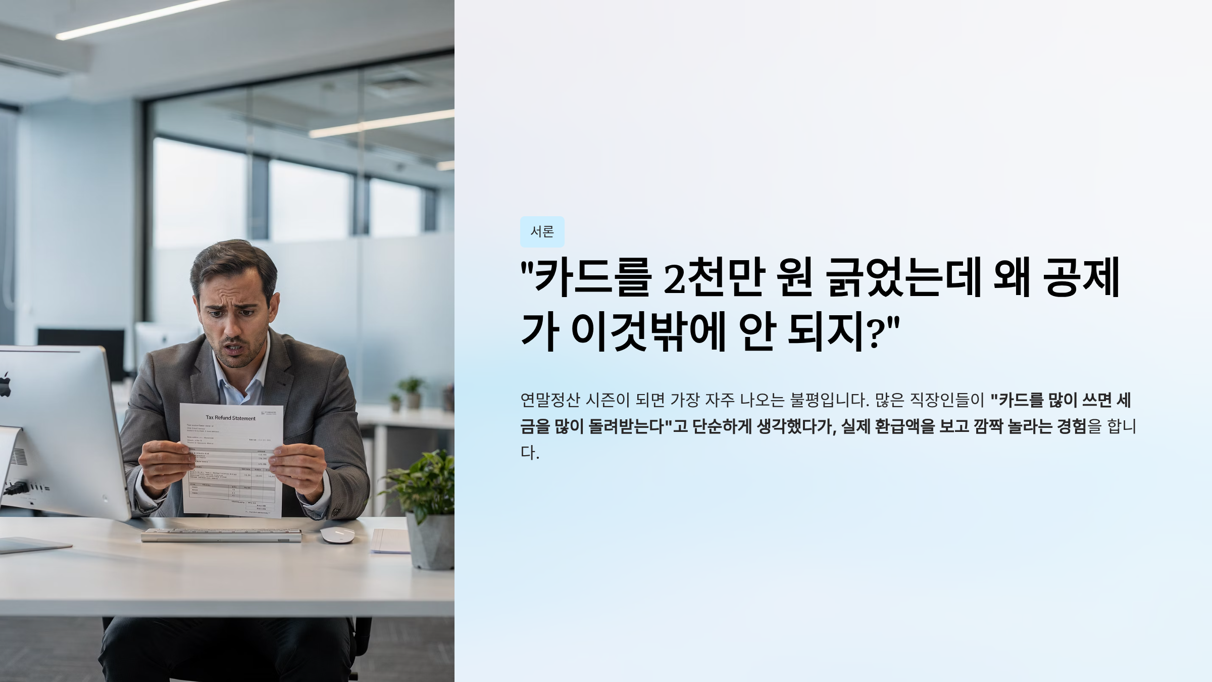 연말정산 시즌이 되면 가장 자주 나오는 불평이 바로 이것입니다. 많은 직장인들이 "카드를 많이 쓰면 세금을 많이 돌려받는다"고 단순하게 생각했다가, 실제 환급액을 보고 깜짝 놀라는 경험을 합니다.