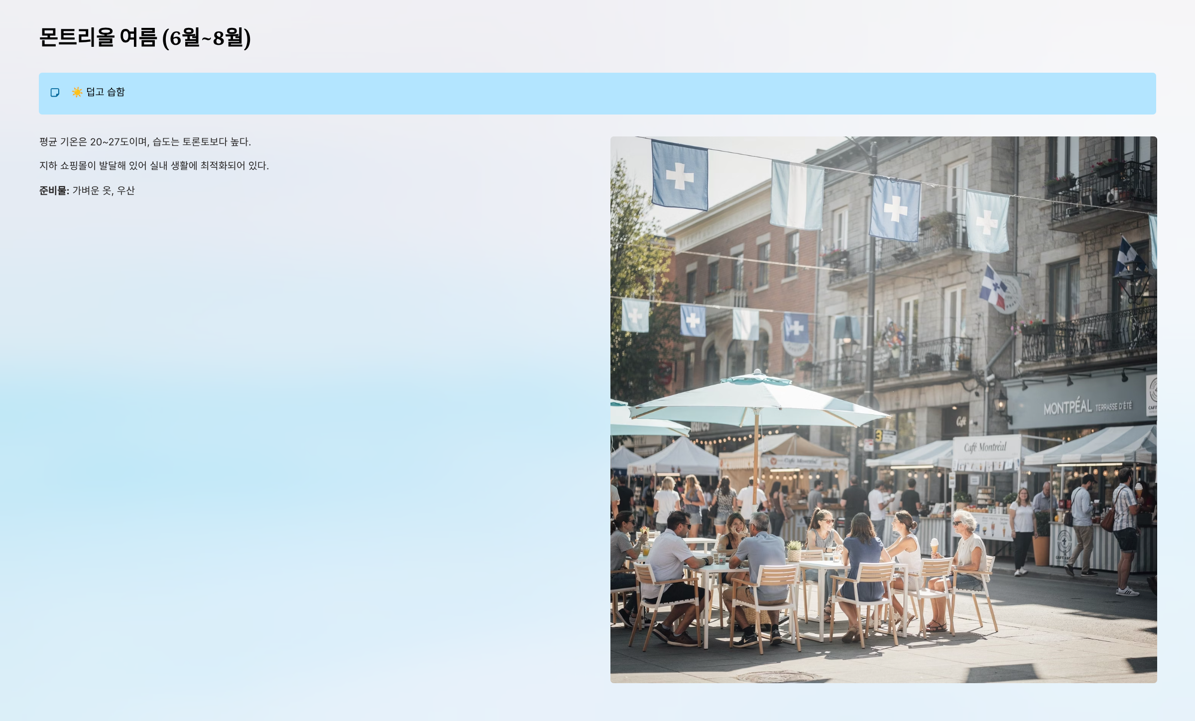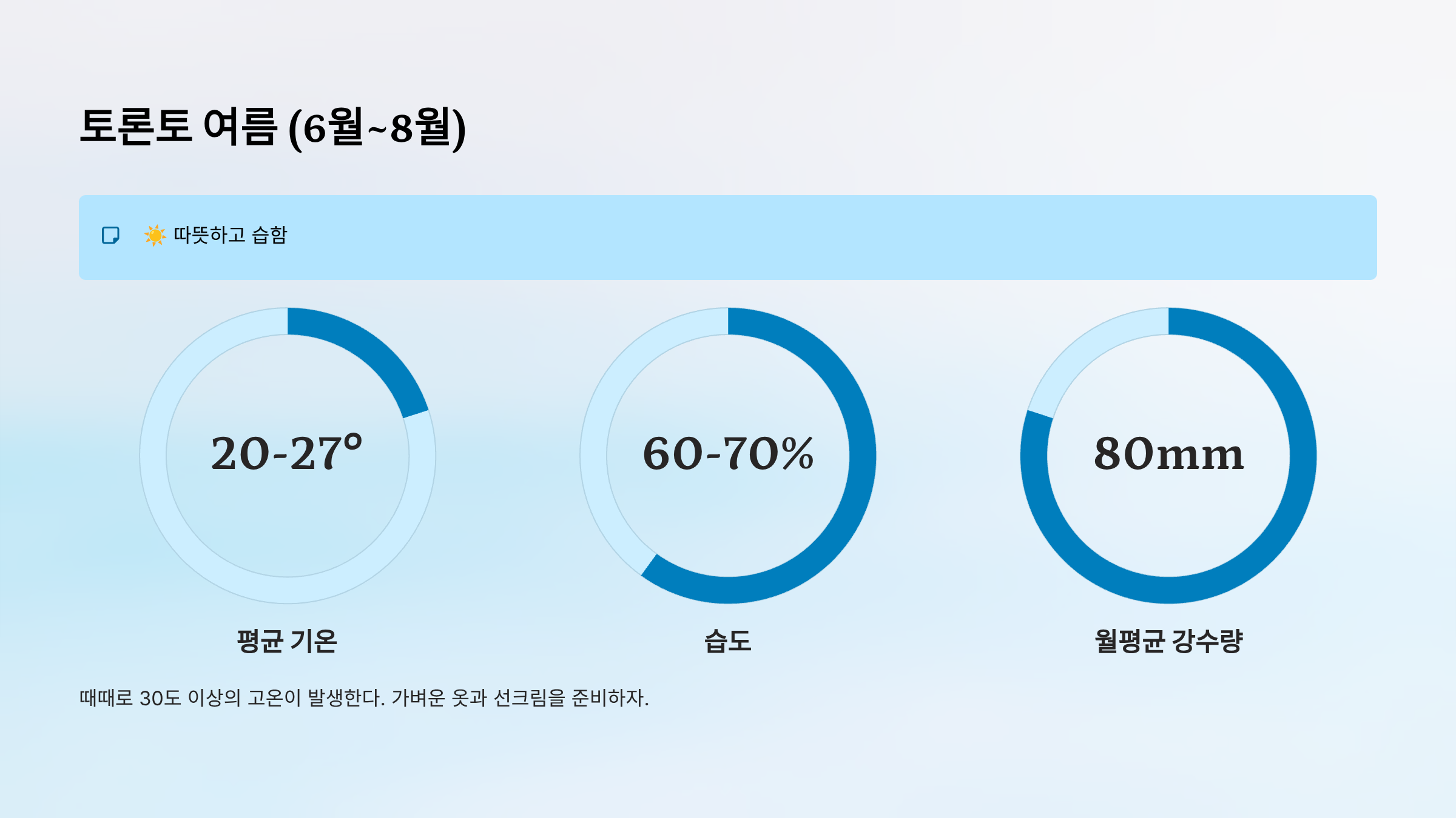 - 여름: 토론토와 비슷