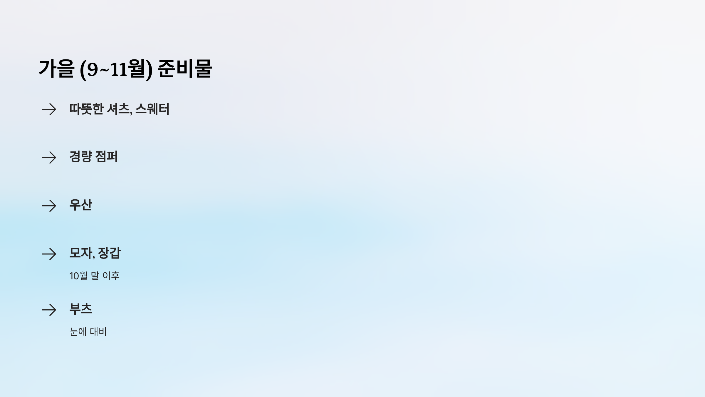 가을 (9~11월) 준비물